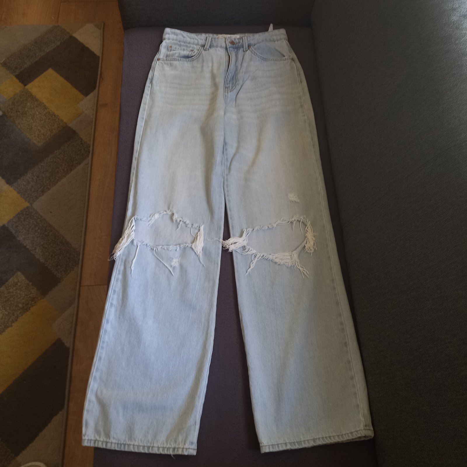 ako nove, len parkrat oblecene rifle, dlzka 7/8 resp. po clenky - podla vysky postavy. dcera schudla, tak posuva... velmi prijemna makka riflovina, skor hrubsia resp. klasicka hrubka latky, su pres...