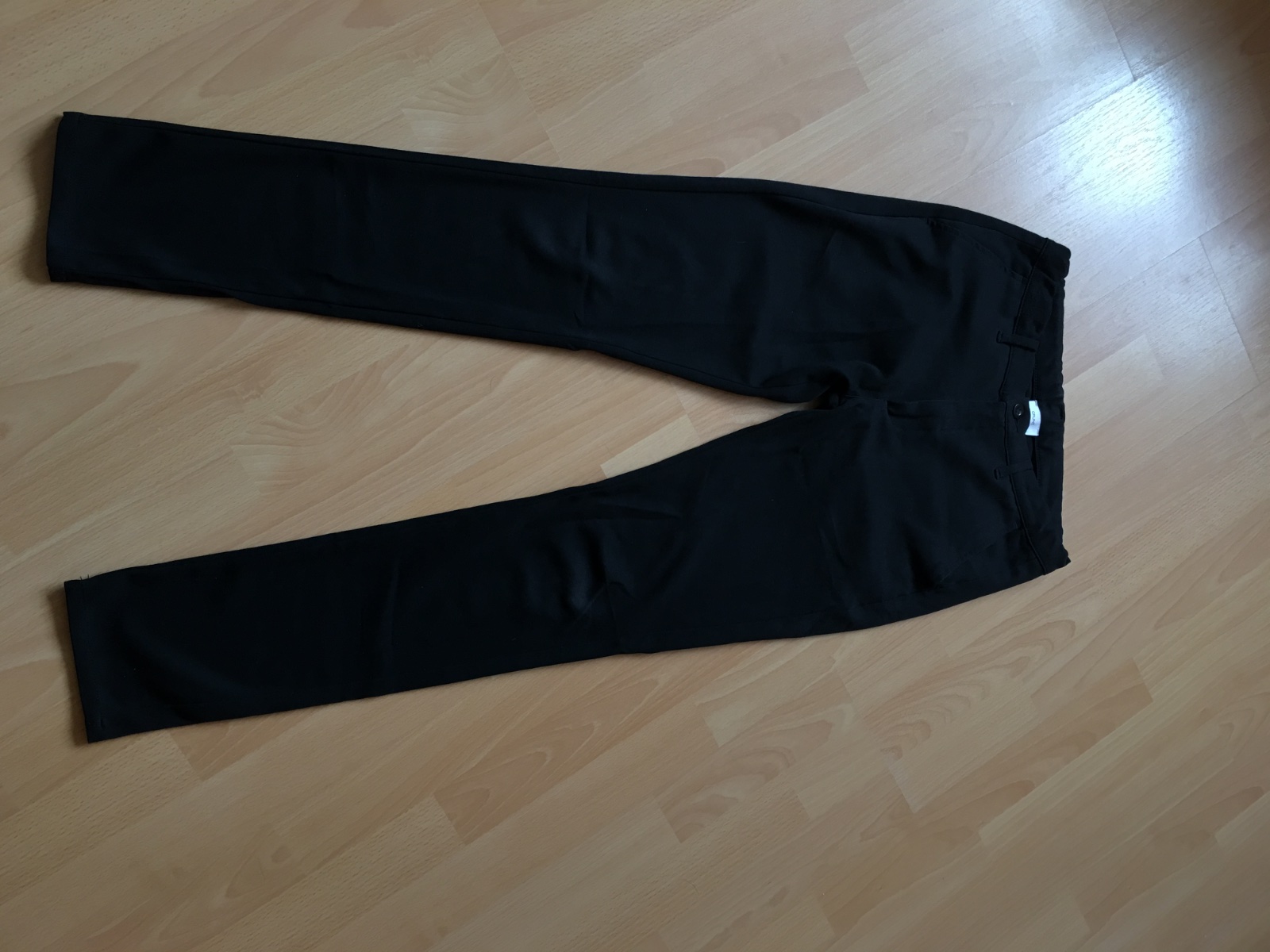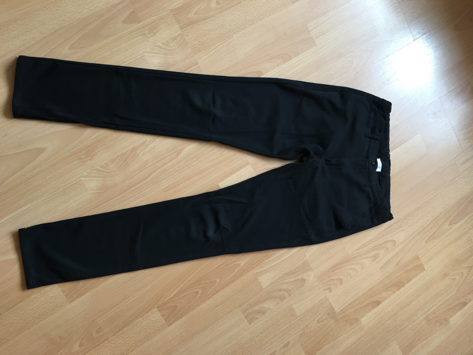 Malinko použ. zachovale.Farba - cierna. Pekný rovný strih.Maju podsivku do polovicu lýtiek. Pas - 2x34cm Boky-2x44 dlžka-103cm od rozkroku 75cm, stehno 2x24cm sed predok 29cm, zadný 33cm