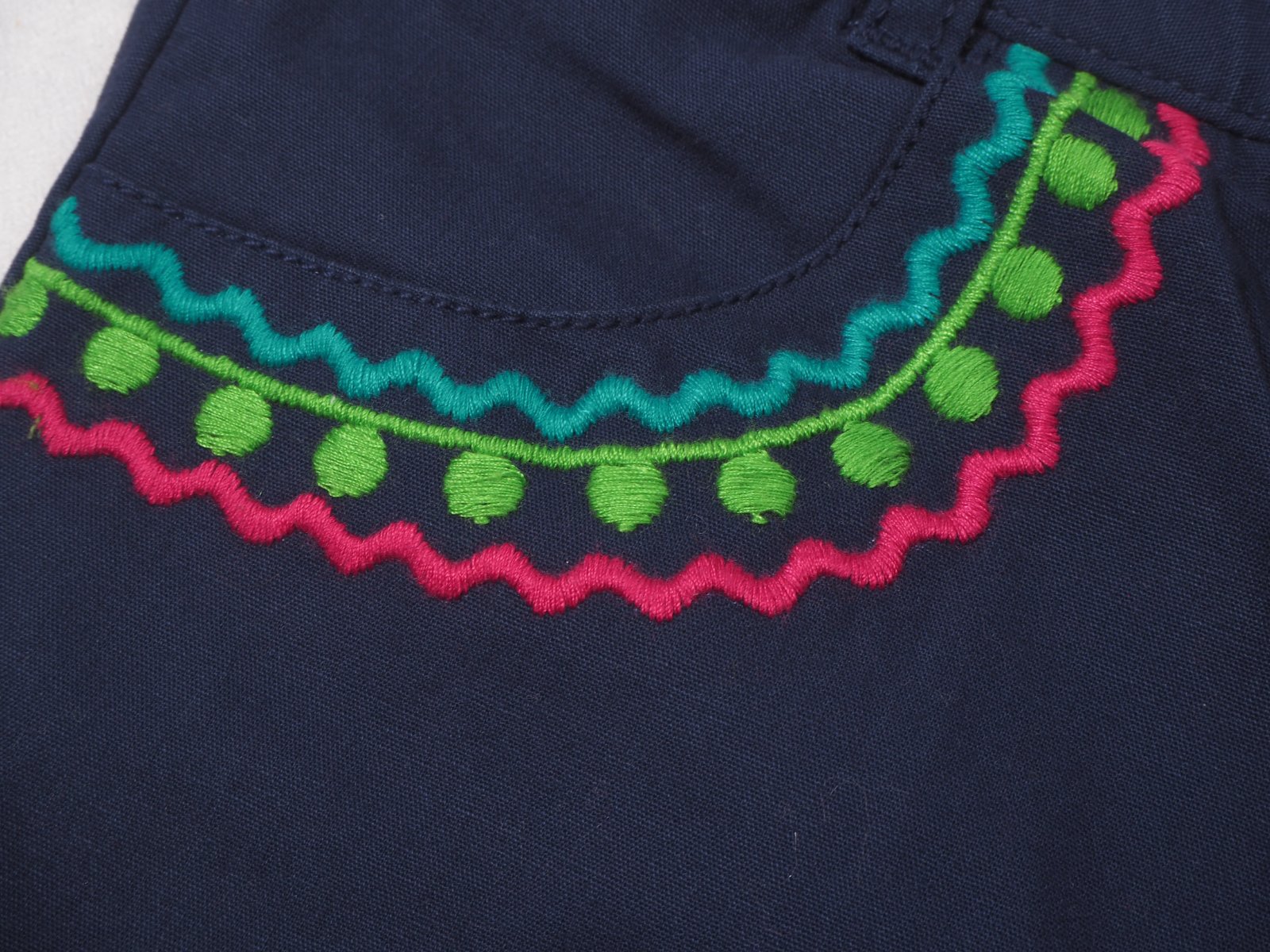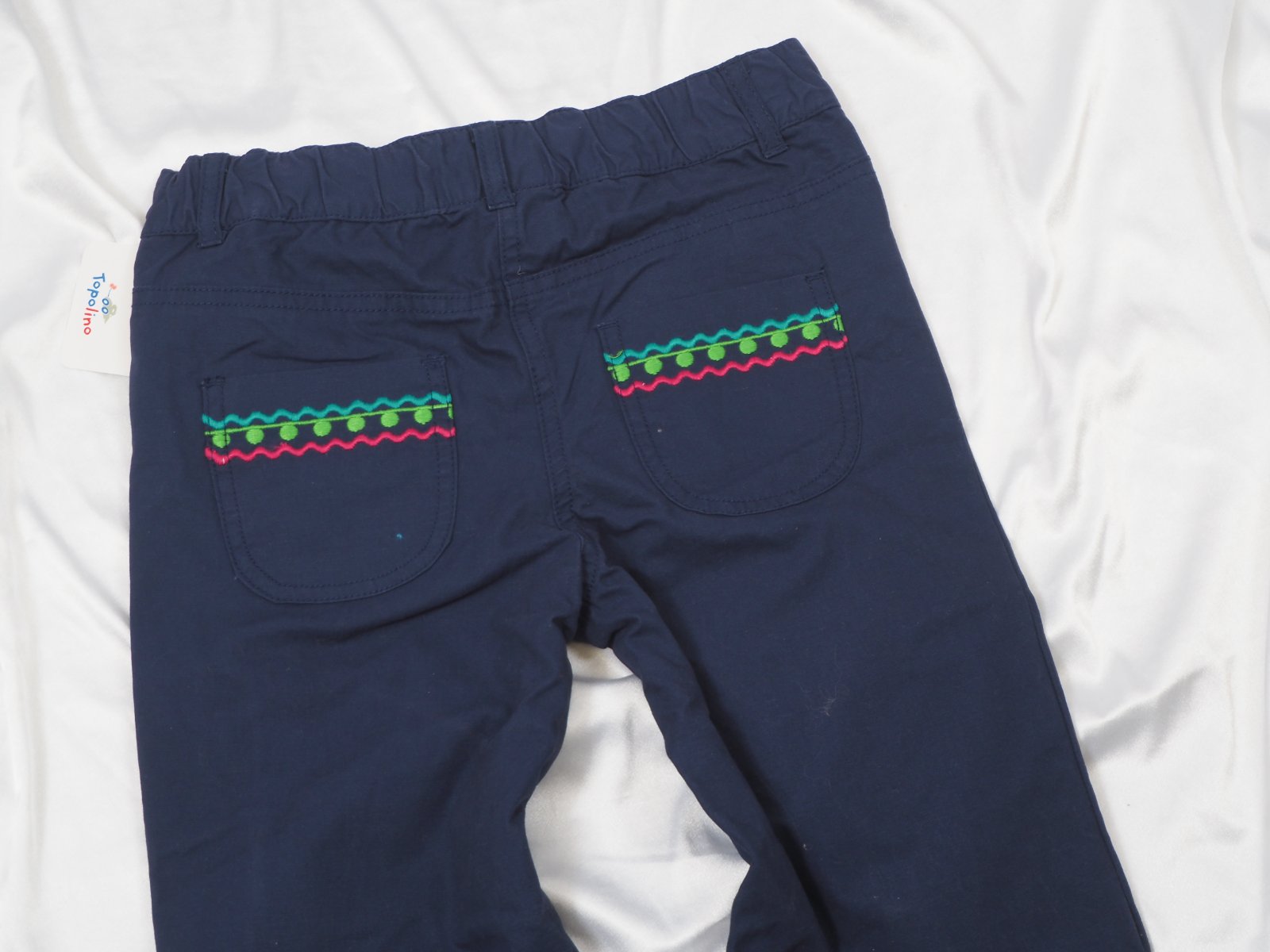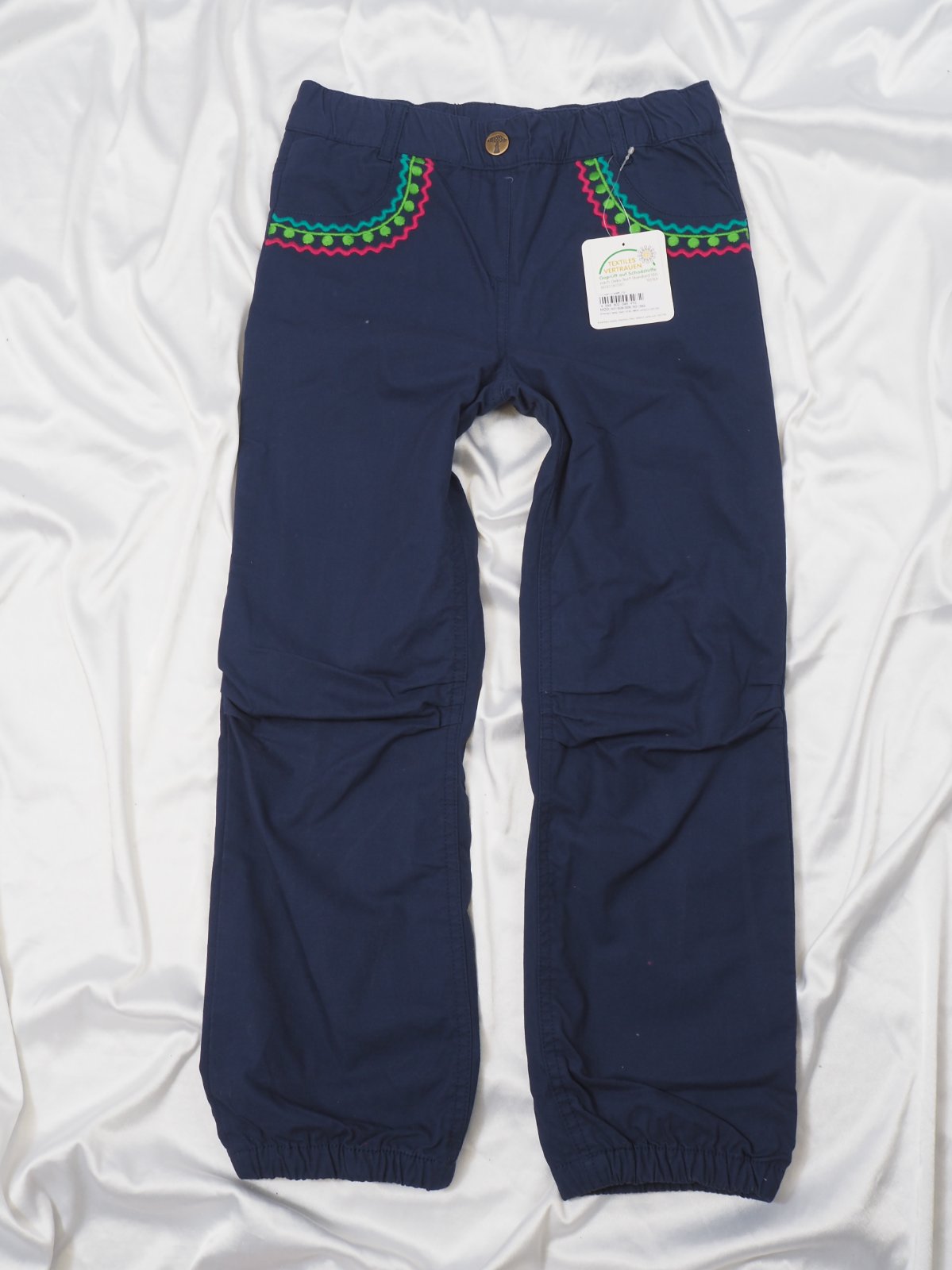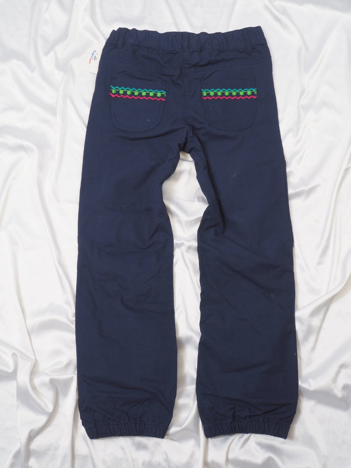 Kvalitné oteplené nohavice s gumkou v páse, 100% bavlna, zdobené výšivkou, nové s visačkou.