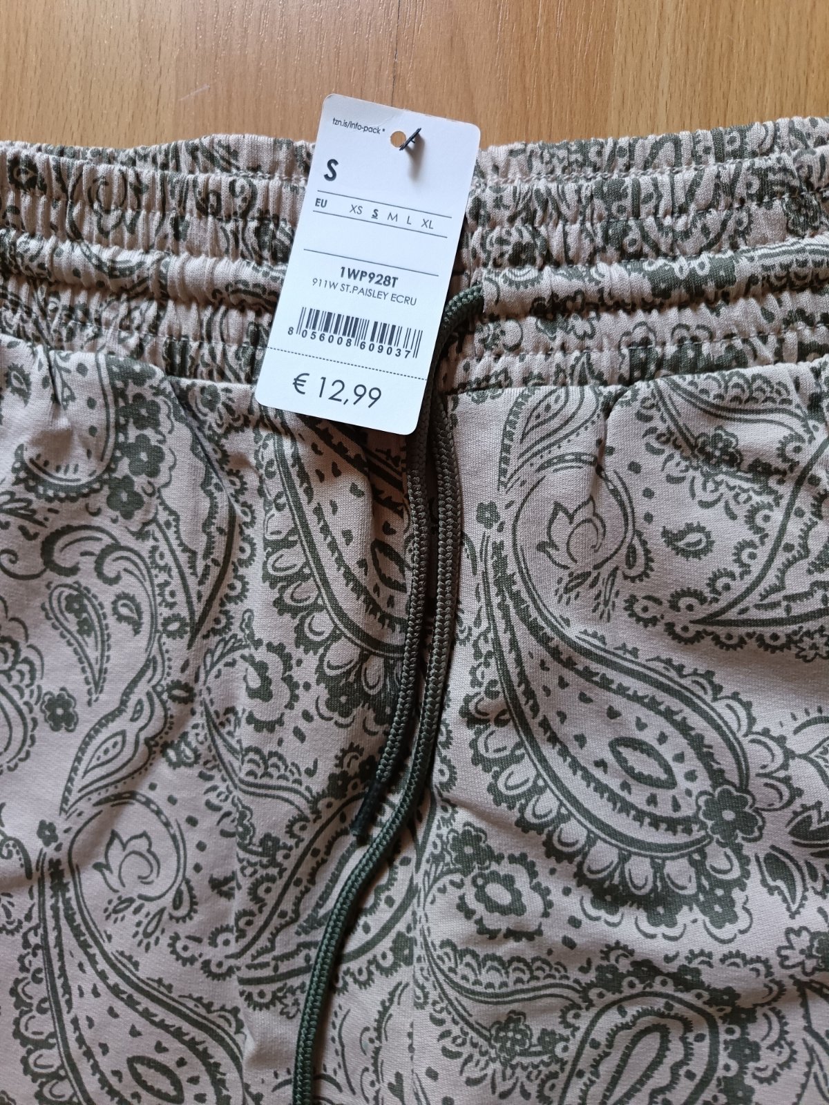 Top teplaky, trendy mocca podklad, zeleny vzor.