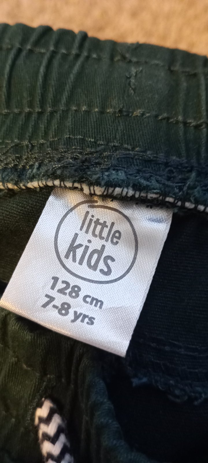 Nohavice nosené chvíľu do školy,,, bez poškodenia, ako nové, vhodné na teplejšie obdobie , nie sú hrubé,, v páse na gumu Bočná dĺžka 76 cm, šírka pásu 28,5 cm, dĺžka od rozkroku dolu 54 cm