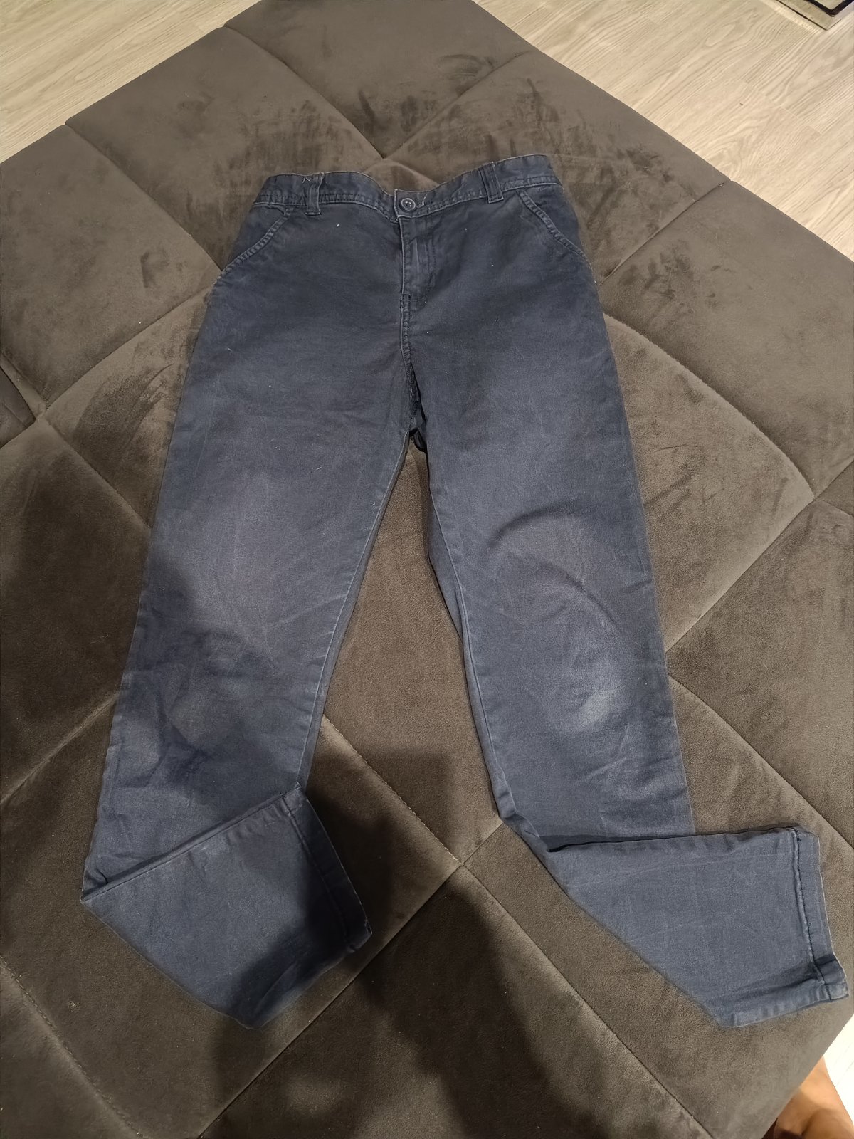 V dobrom stave, pod kolenom trosku bledsie ale inak žiadne poškodenia, príjemný mäkkucký materiál, dobre sedia