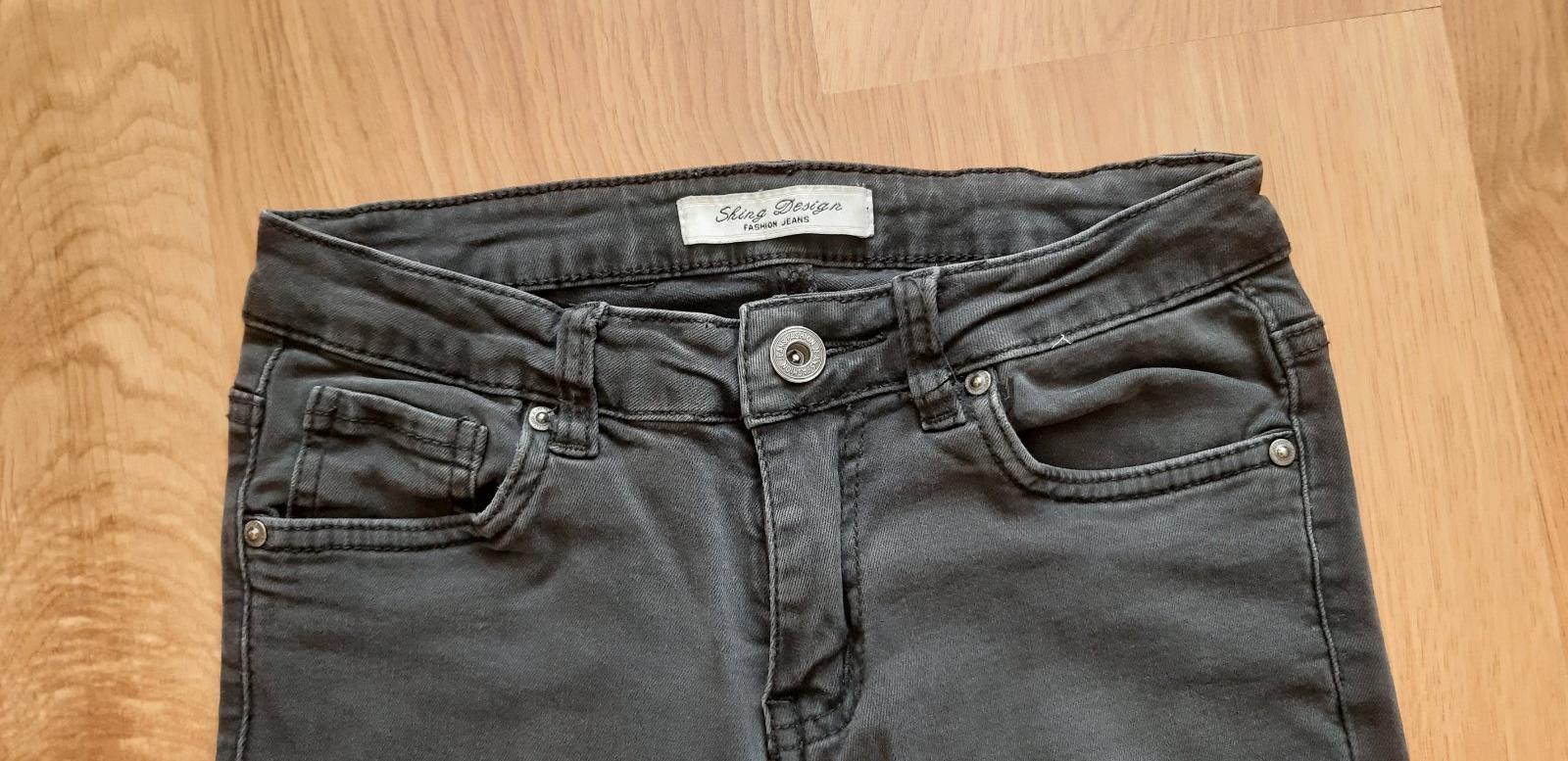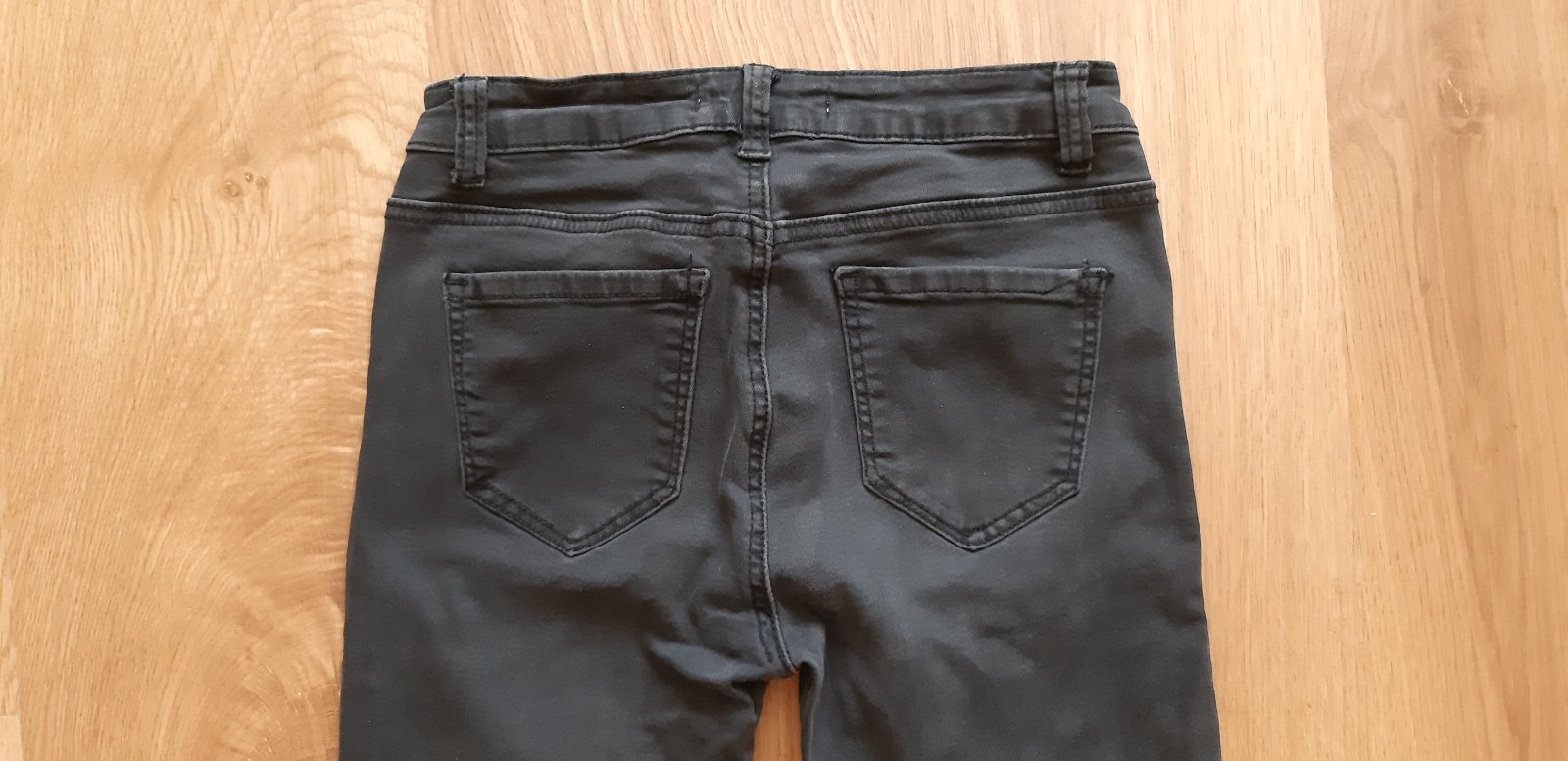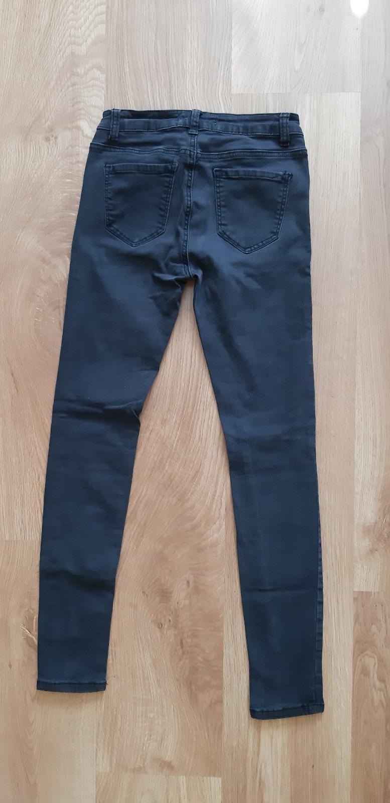 Rifle sú tmavo sede skoro až čierne. Sú vybíjané a dotrhane. Elasticke . Veľkosť 34 . 1x oblečené