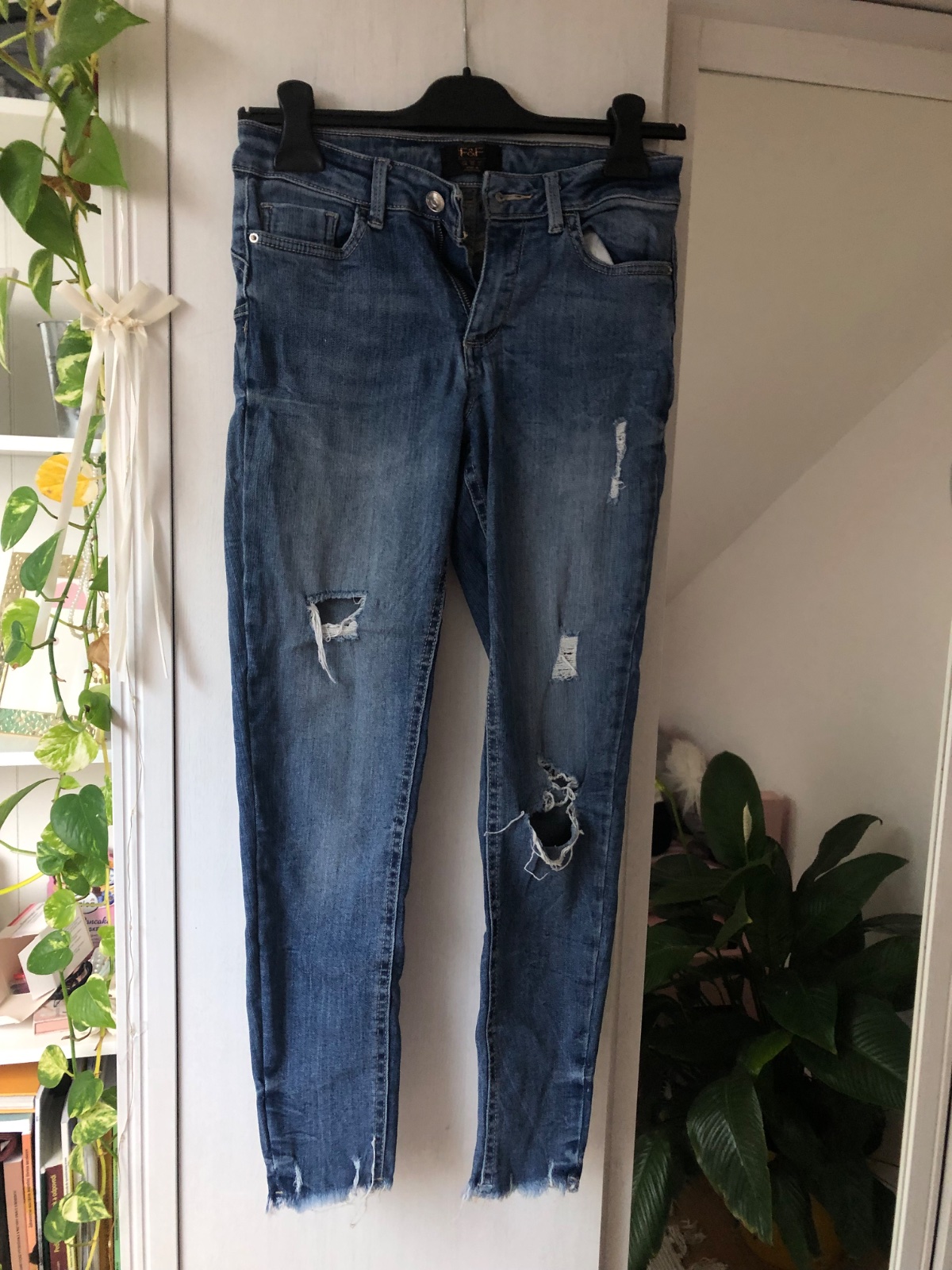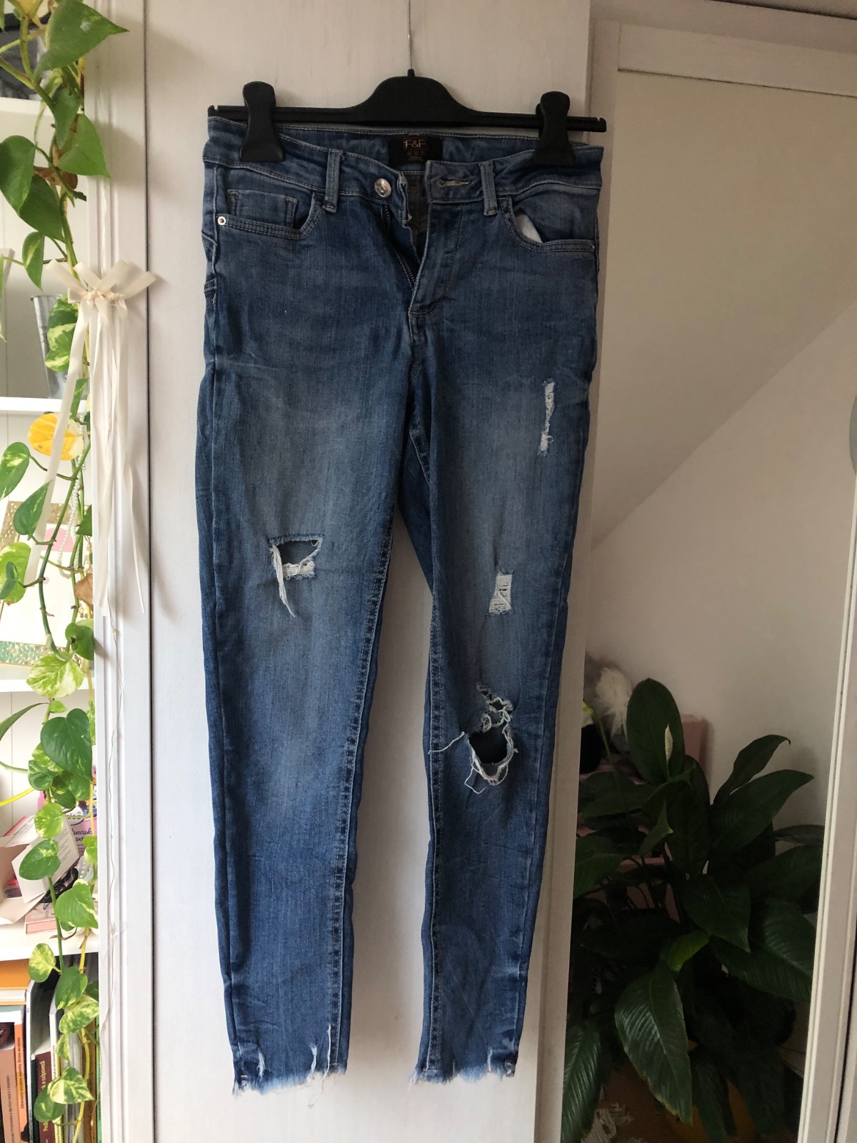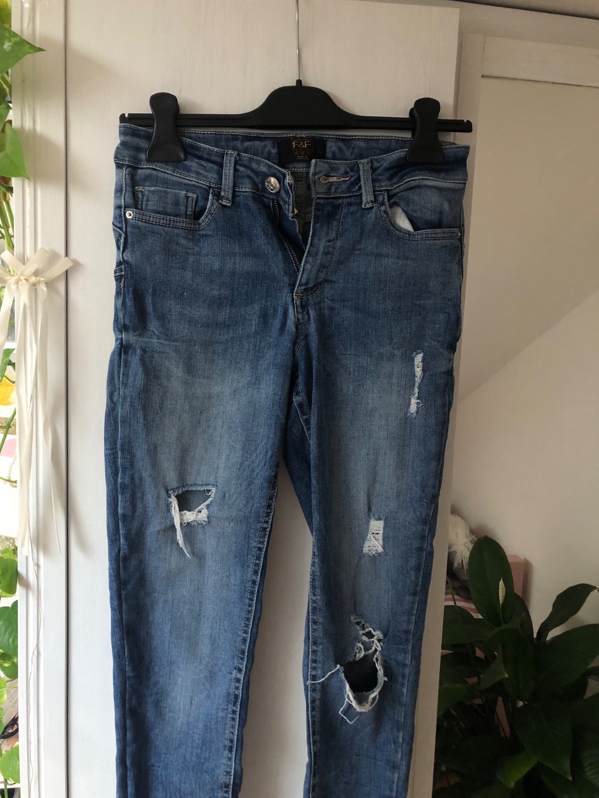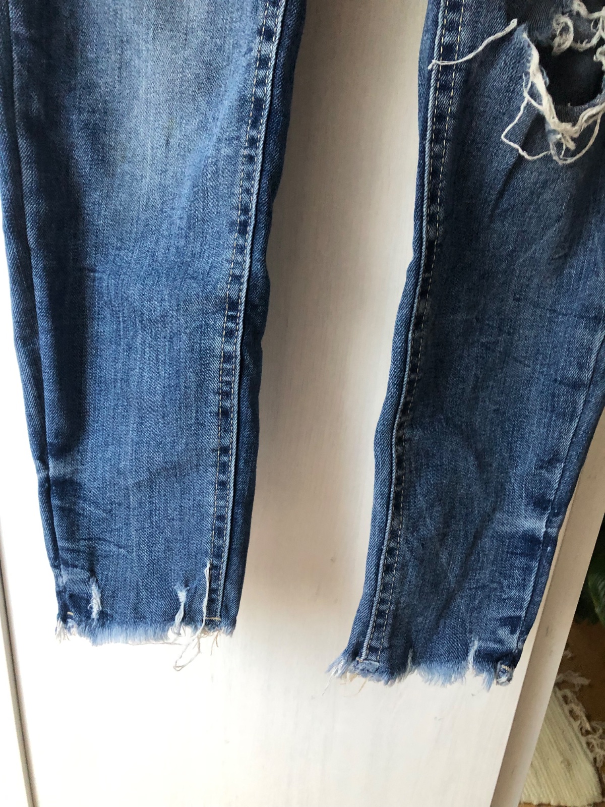 Predám vyskúšané dámske rifle tmavomodrej farby, veľkosť č. 34 (XS). Po bokoch a vzadu sú vačky. Slimkový strih. Nepoškodené, mierne elastické. Dĺžka vrátane patentu 94cm, od rozkroku 70cm. Šírka v...