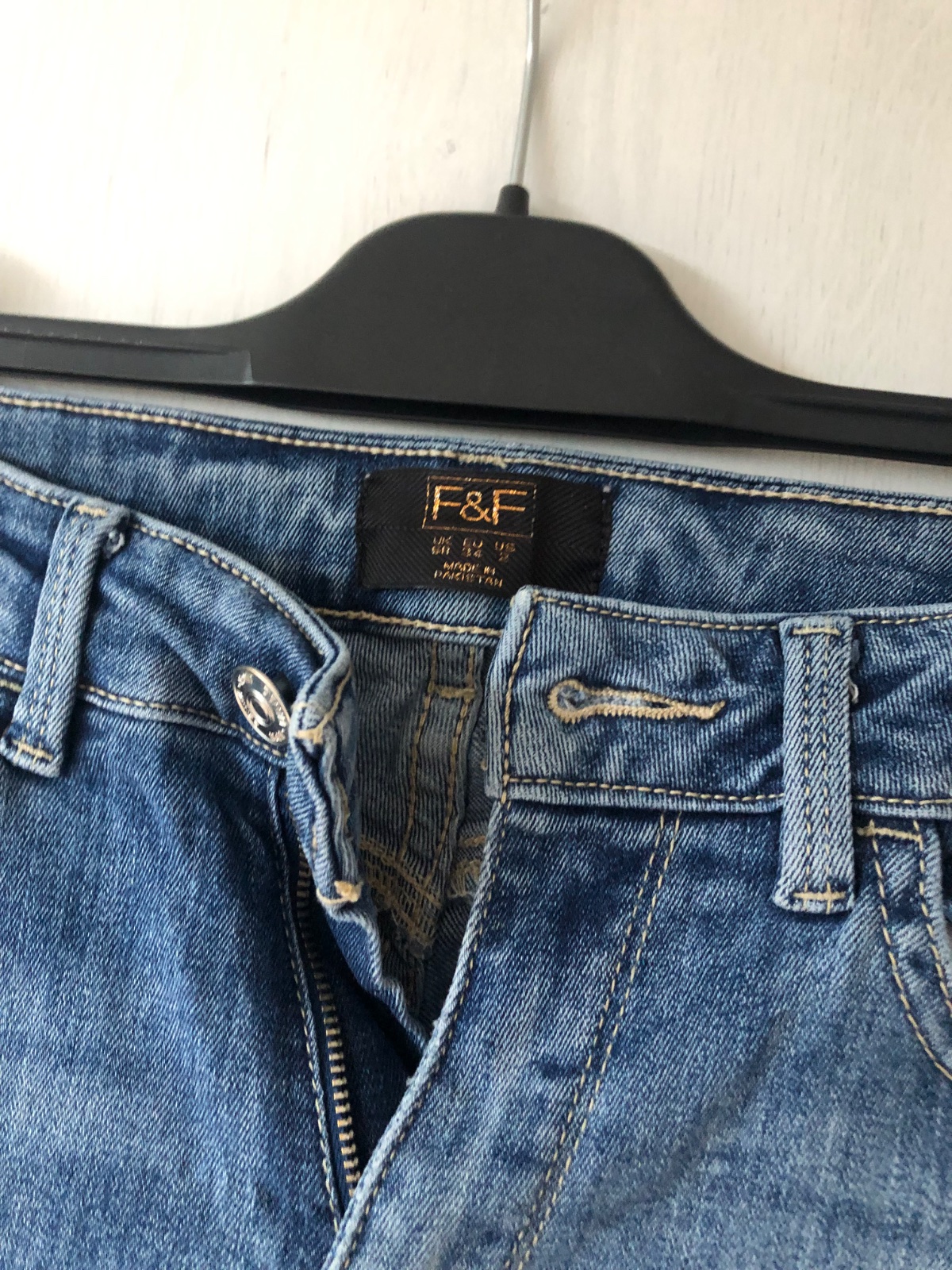 Nadherna tmava indigova farba, extra elasticke, uplne obtiahnute, pas mierne vyssi...top stav- nenosene, prané.... pas 32, predny sed 26, bocna dlzka 94cm