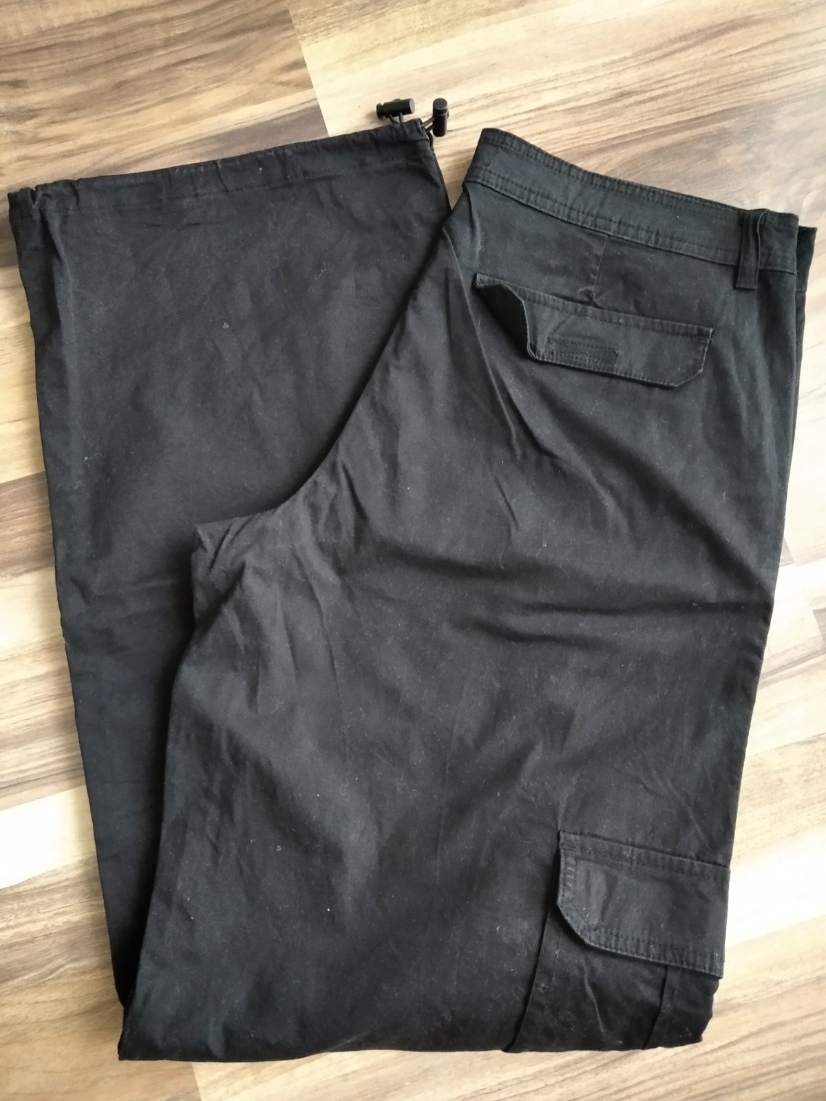 Predám 1-krát oblečené nohavice. Písaná veľkosť 3XL /4XL, ale sú rozhodne menšie. Na boku strieborný pásik. Premeriam. N