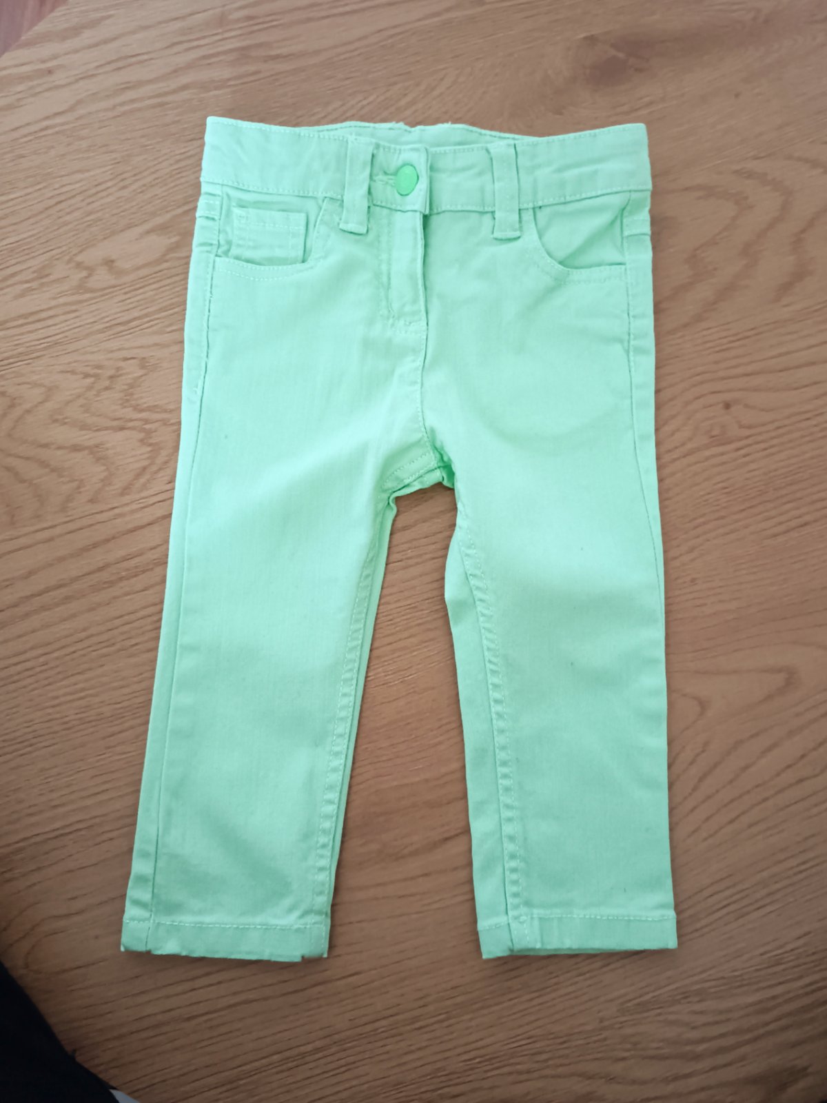 Prijemny pevny material na jar al.jesen, pekne sedia, vzadu na vreckach jemne osuchane od prania, ale na bezne nosenie stale pekne