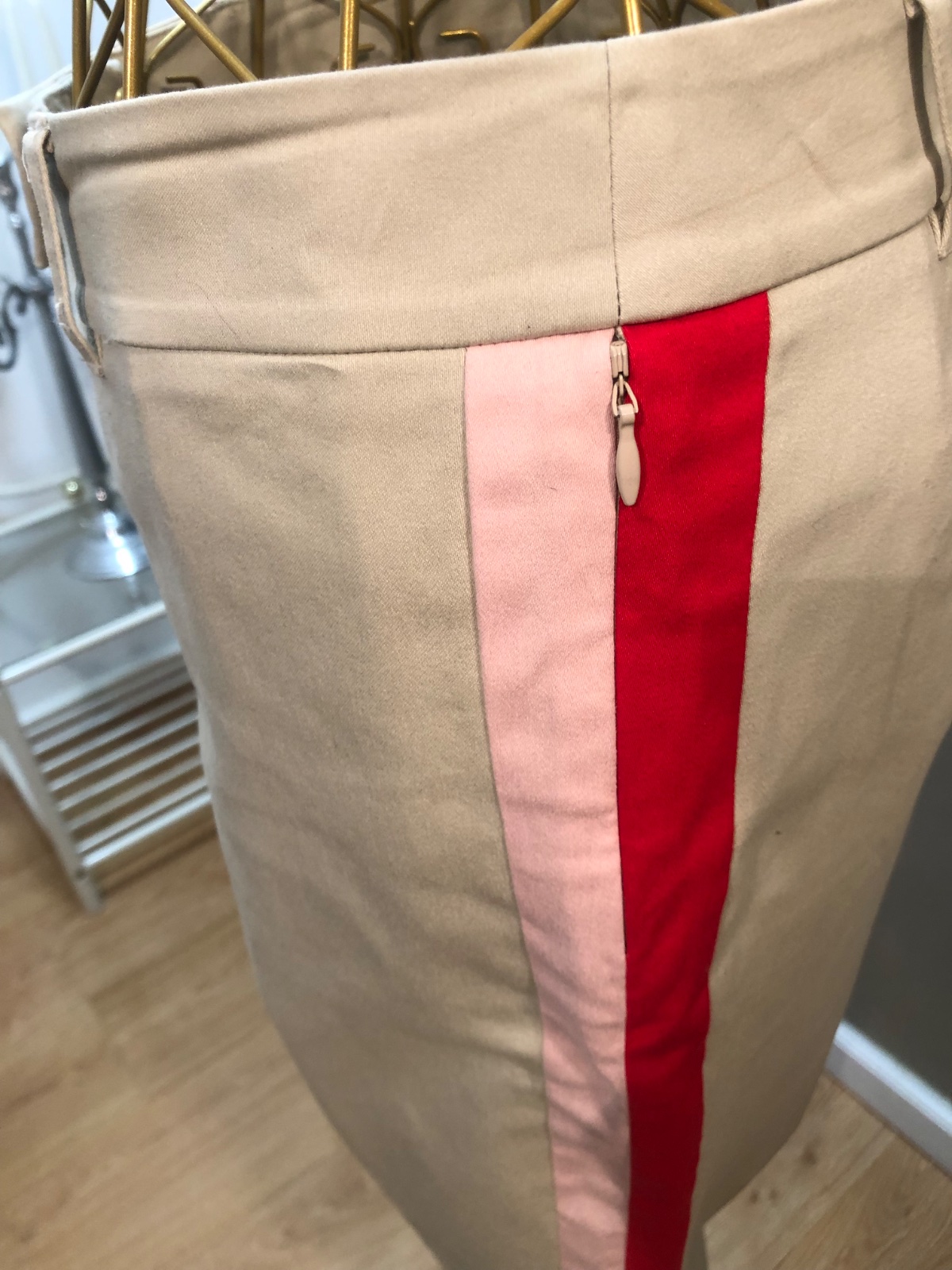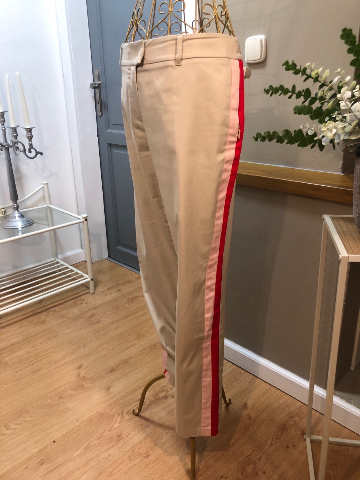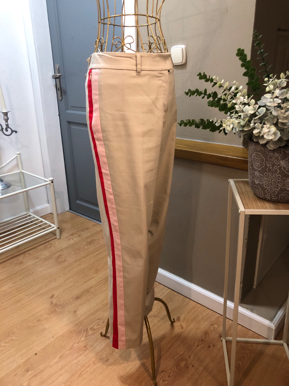 Luxusné béžové nohavice, s bočným pásikmi, všité vrecká, super stav.