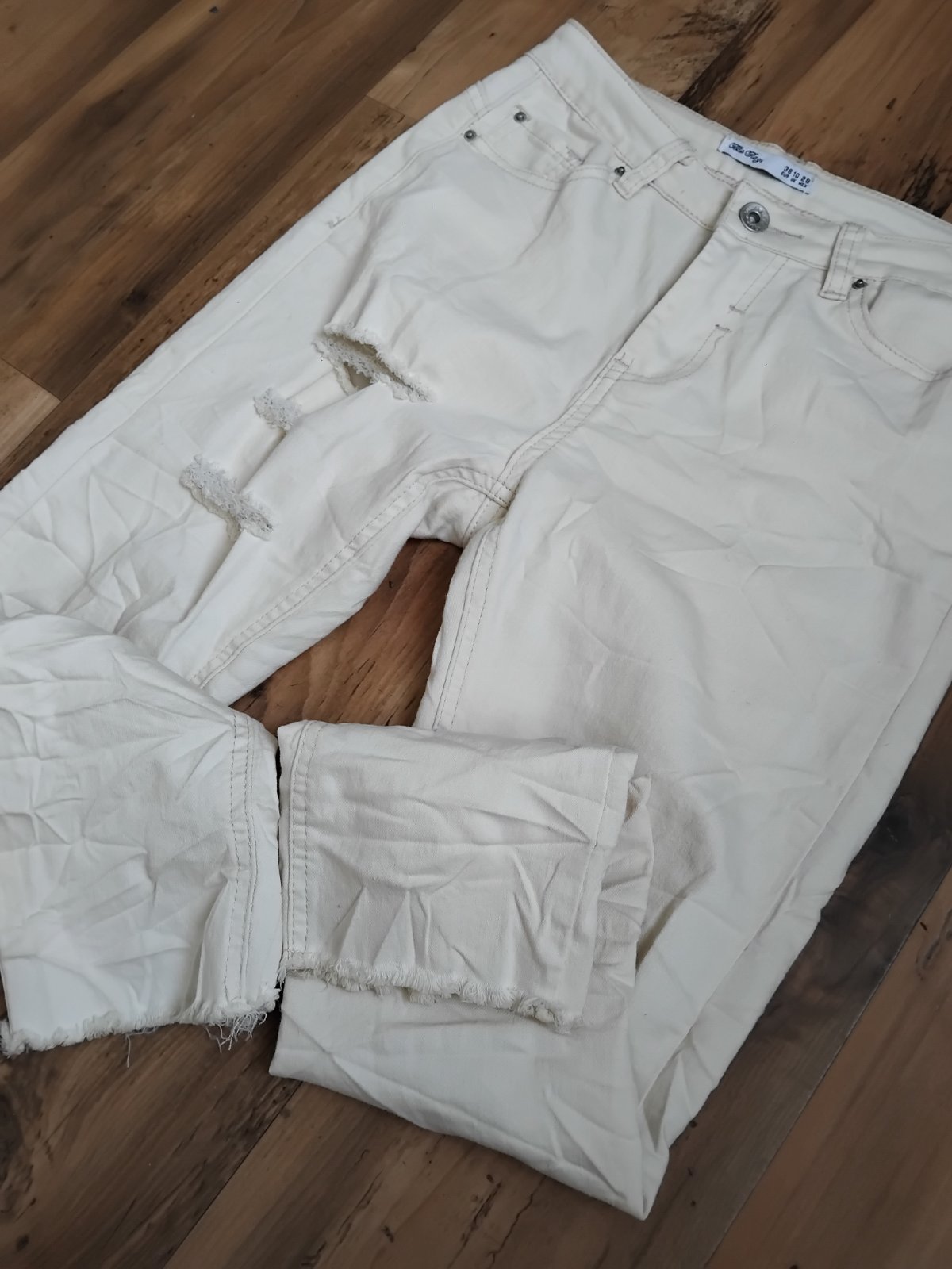nenosene elasticke novhavice s viasackou ,žial nesadla velkost,velkost pisana US 9/10 Dĺžka 97 cm, vn.dl. 76 cm, pás 80 cm natiahne sa na 90 cm. ultra skinny nieco ako riflovina,bezove v latke pret...