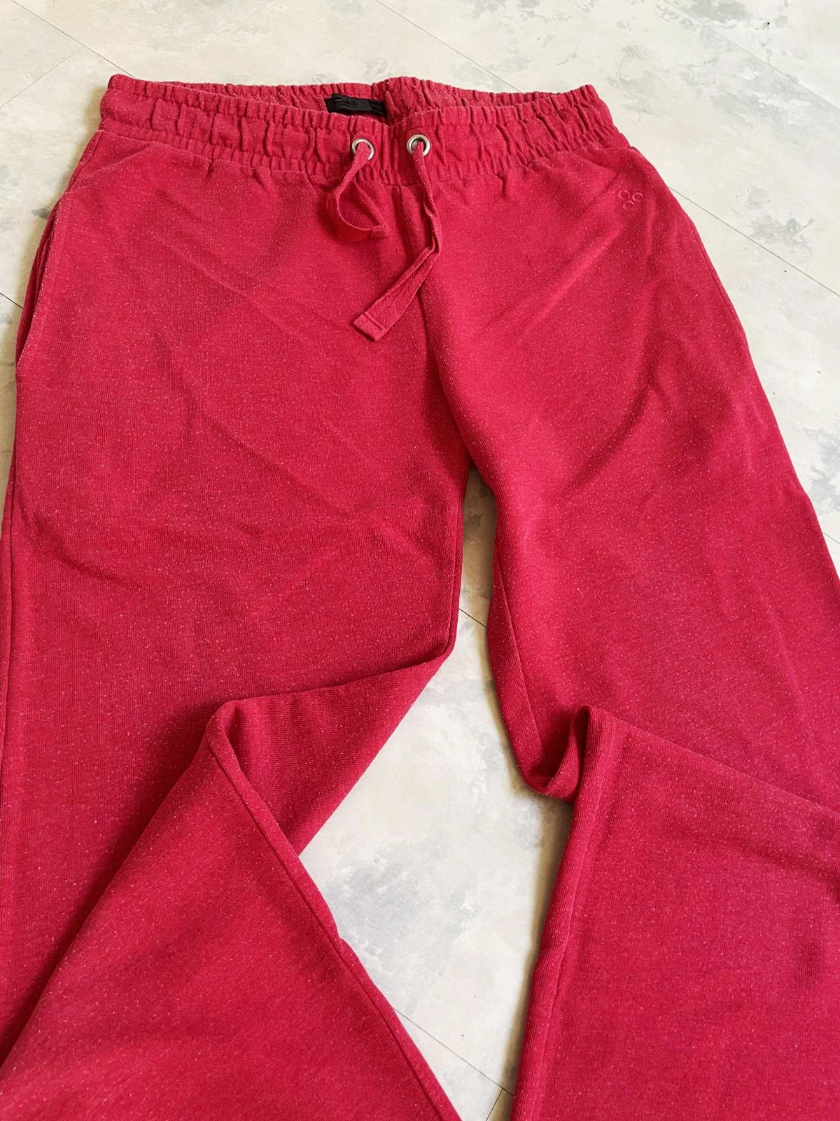 dolu jemne rozšírené tepláky, farba zastretá - ružovo červená / malinová