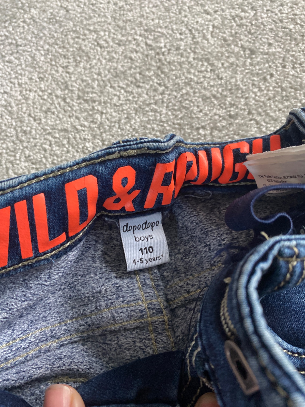 Na predaj malo nosene chlapcenske rifle s regulovatelnym pasom. Znacka Dopodopo. Velkost 110. Ziadne nedostatky. Elasticke.