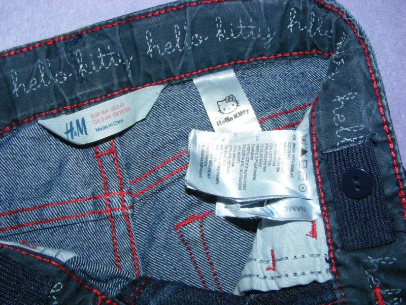 Rifle Hello Kitty zn. H&M, v páse regulovateľná guma, funkčné vrecká.
