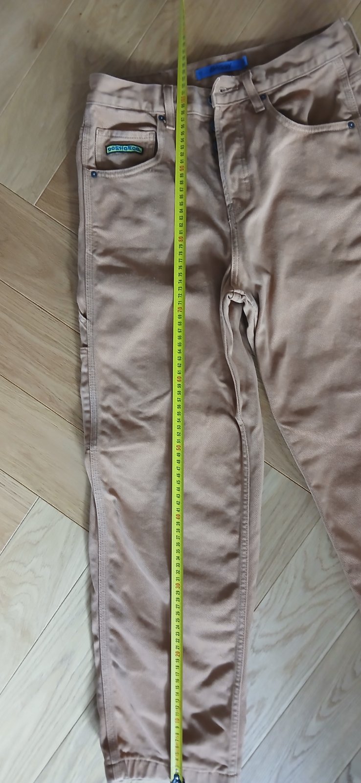 Párkrát oblečené nohavice, materiál príjemný, mierne elastický, majú 4 vrecká. Dl. 102, boky 49x2, pás v kľude 40x2cm.