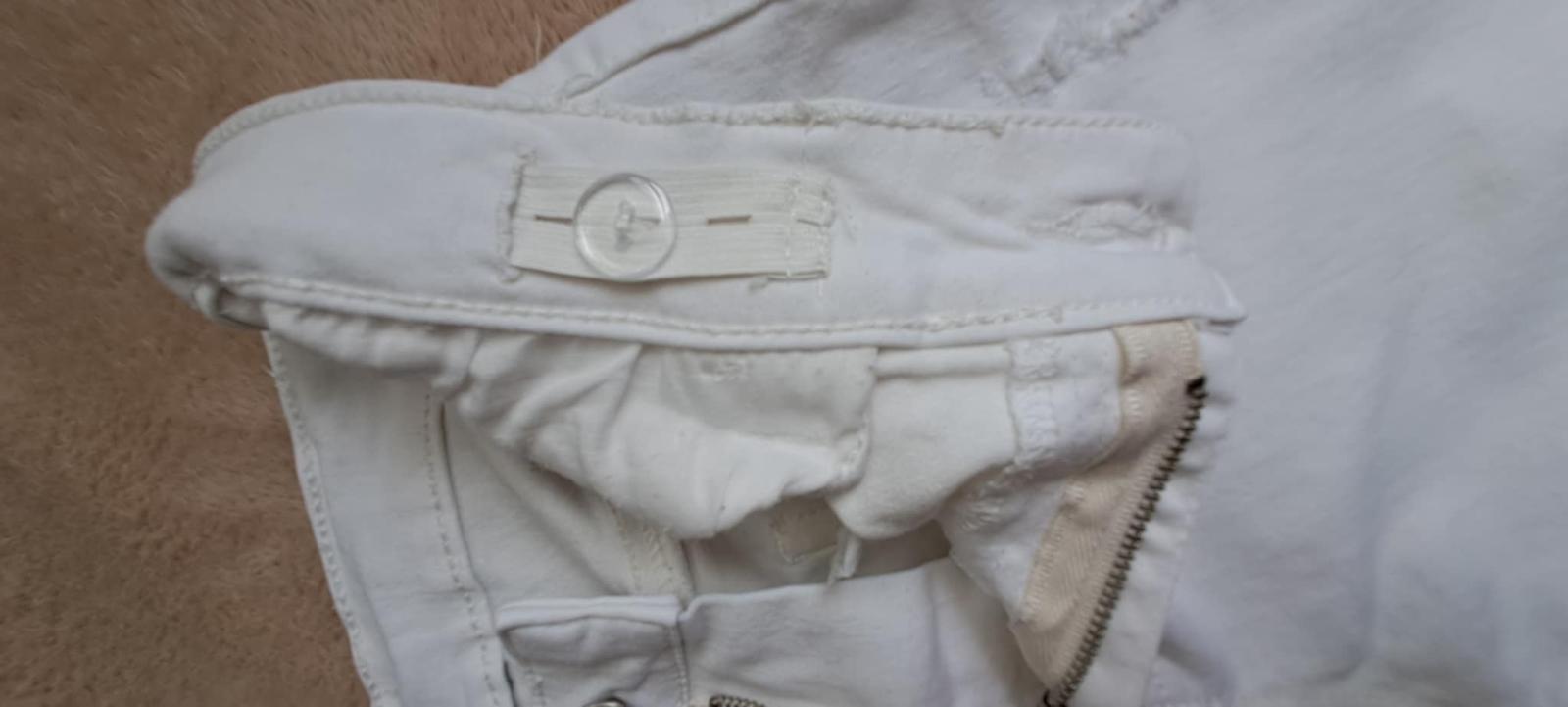 Nosené vo výbornom stave bez fľakov a poškodenia. Materiál bavlna / elastan. Veľkosť odhadom, štítok je vystrihnutý - prekážal. Uvádzam rozmery.