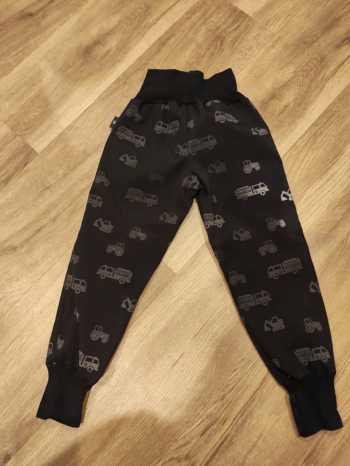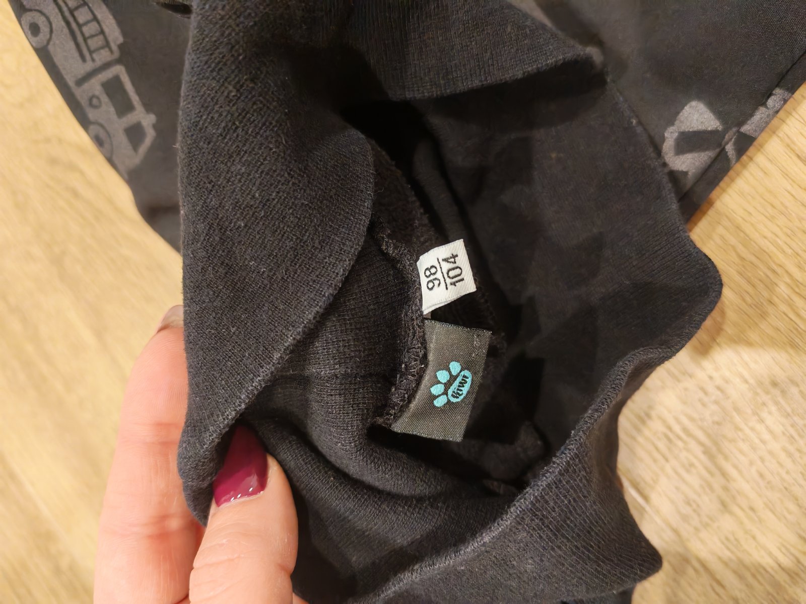 Velkost 98/104 nositelne aj mensia 110 kedze ma patenty dost dlhe. Znacka kiwi, reflexny softshel. Trosku vysuchane reflexne auta na zadku a na kolene + mala dierka na kolene (vid foto). Dierka je len na softshelovej latke, na vnutotnej fleesovej vrstve nie