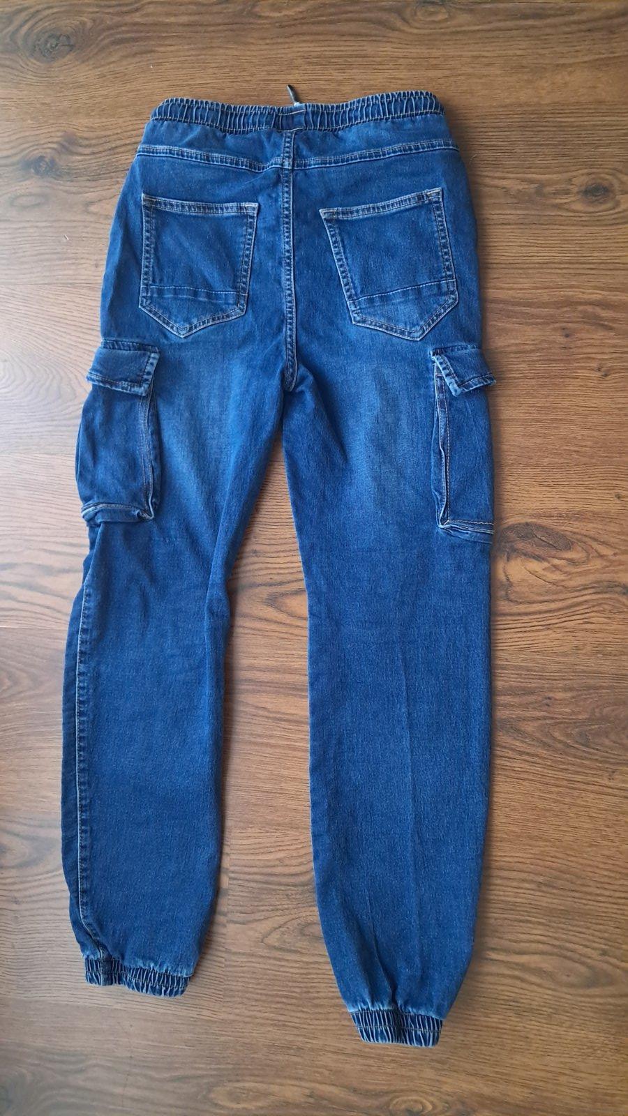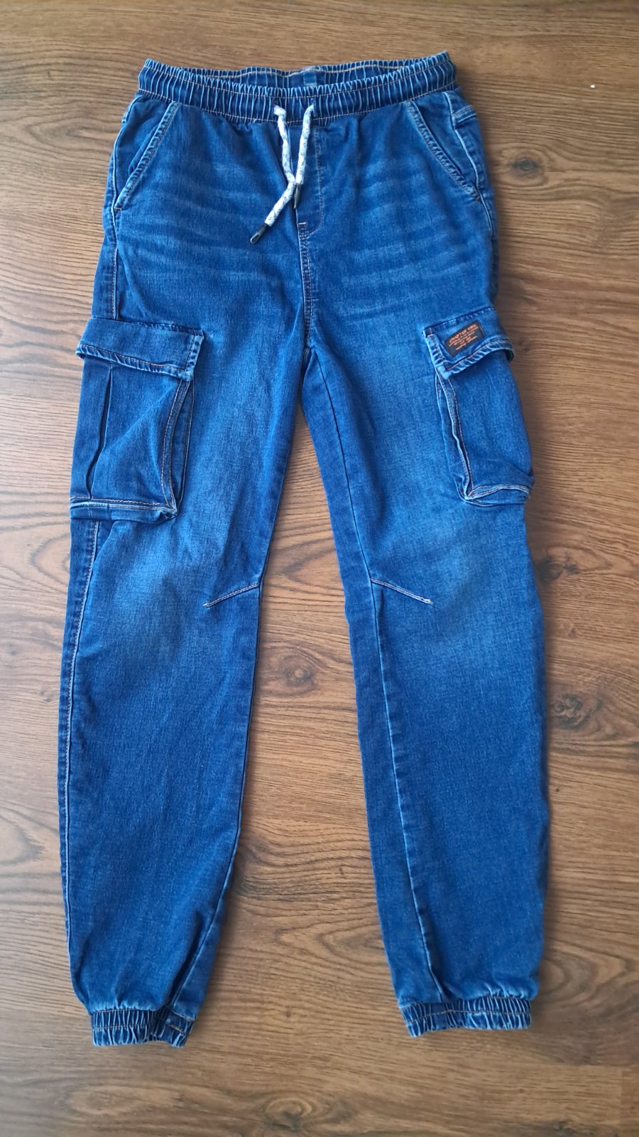 Zachovalé riflové nohavice, bez poškodenia, celková dlžka 94 cm, vnútorná dlžka od rozkroku 66 cm, pás je na humu aj šnúrku 34 cm (x2), da sa natiahnuť o 5 cm