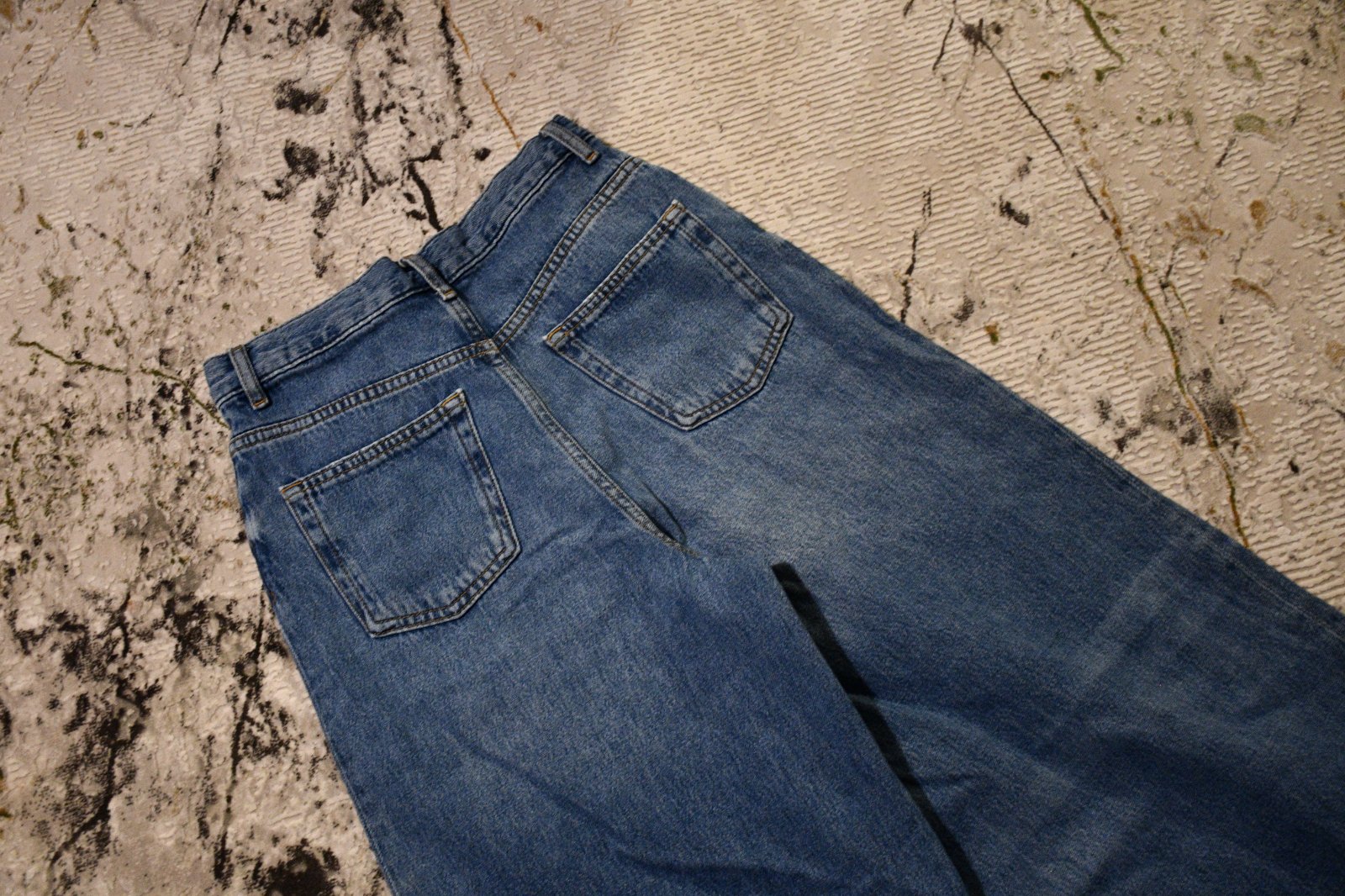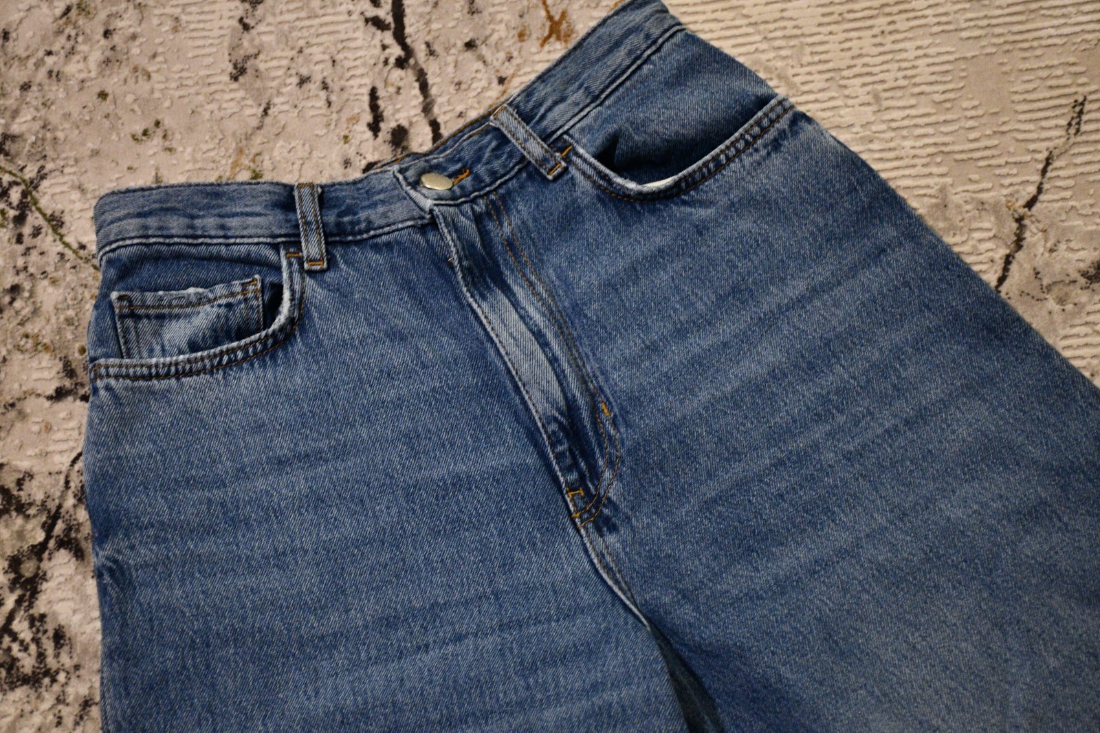 Predám kvalitné, štýlové široké jeansy s vysokým pásom, super stav. Oblečené pár krát, ako nové! Dĺžka 115cm pás 36cm x2. boky 50cm x 2. Sedia S-M
