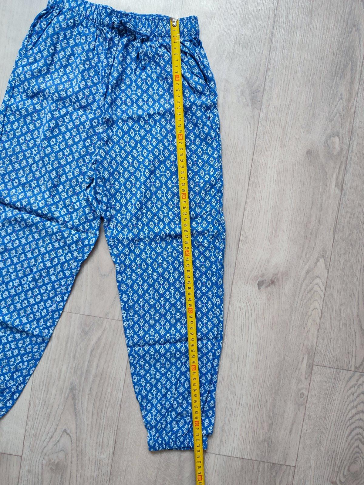 Predam modre nohavice s farebnymi kvetmi, bez vackov, pas na gumicku. K dispo aj ine nohavice, kuk inzeraty. Osobny odber mozny v BA a Dunajska Luzna.