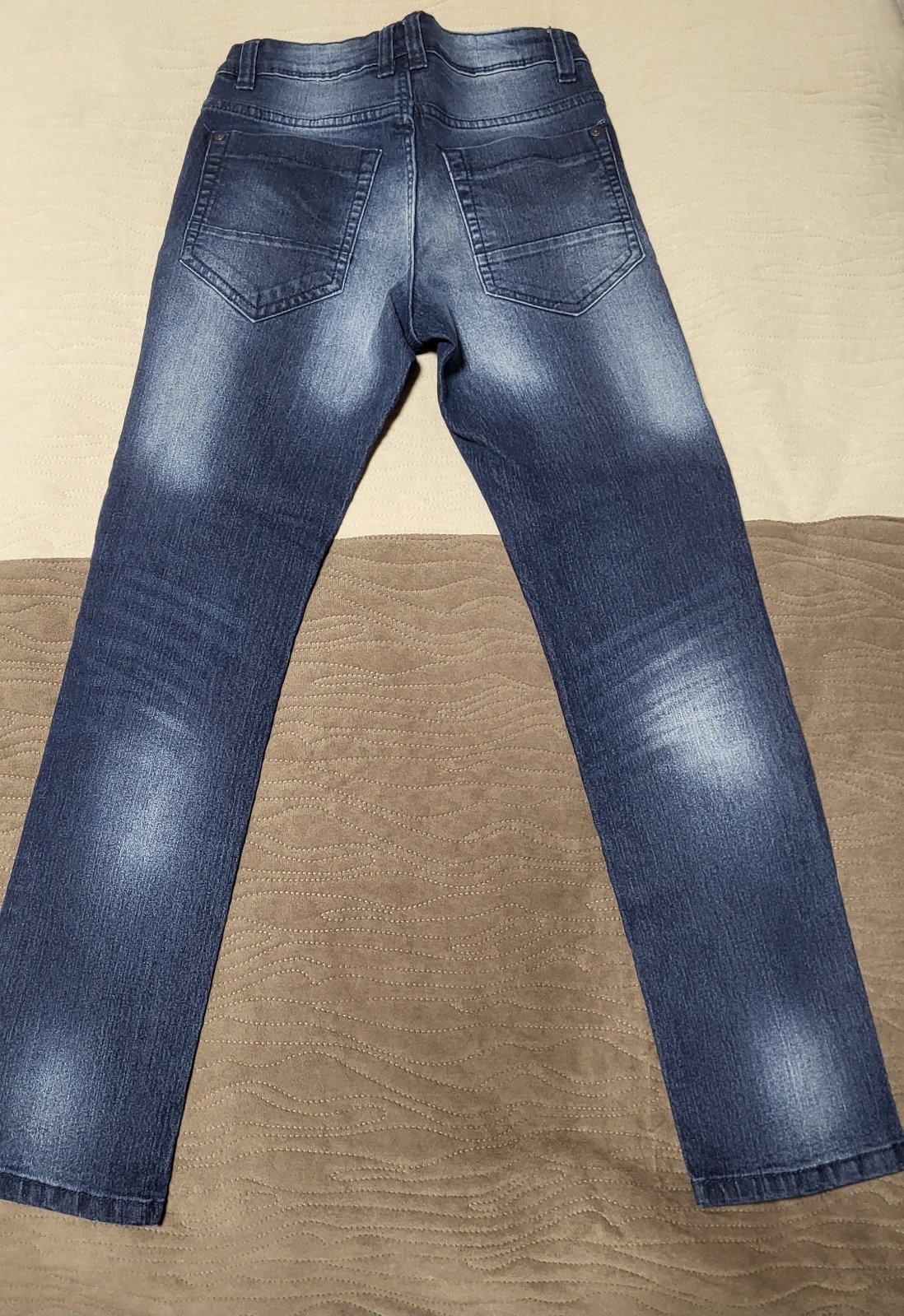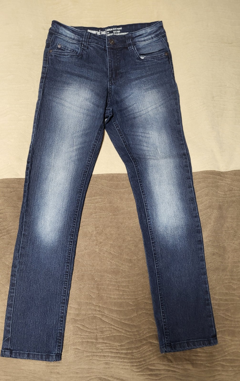 Ponukam rifle na donosenie. 1.bielo modre flakate zn.Denim Kids ,velk.146 ,bez poskodenia ,len na jednej nohe zboku mini flak(skoro nevidiet). 2.cierne zn.pepperts, velk.146,na kolienku suchnute (f...