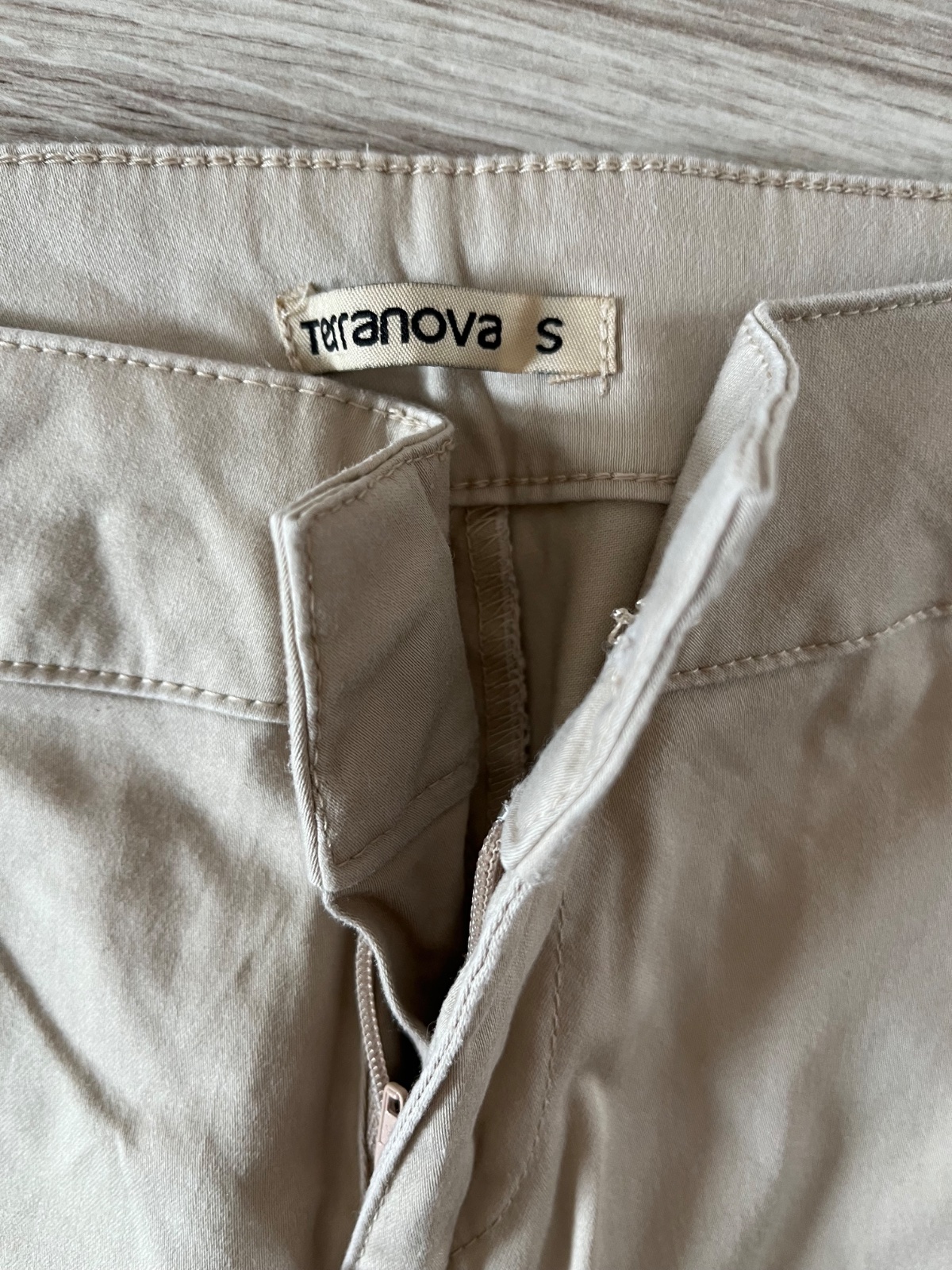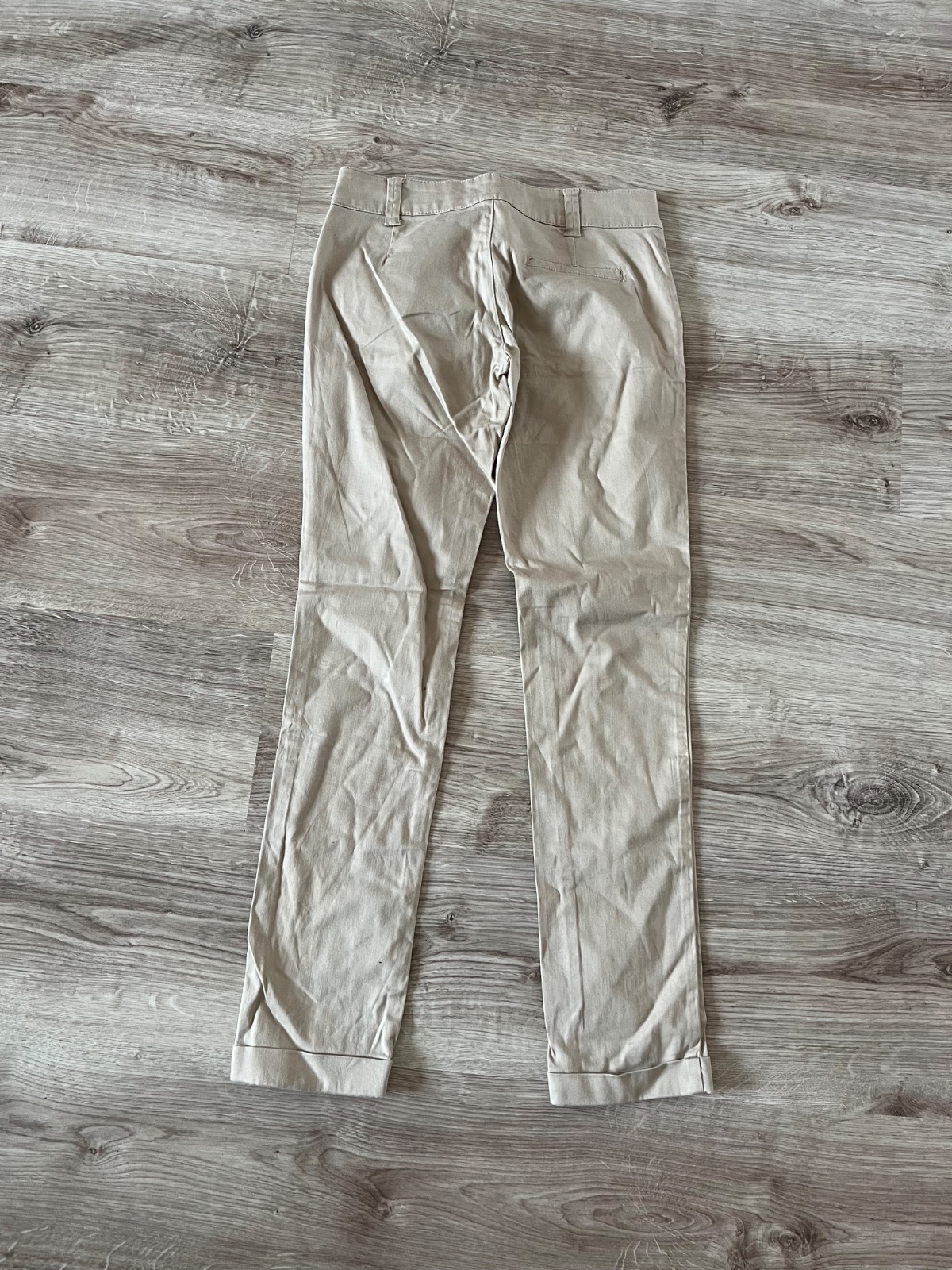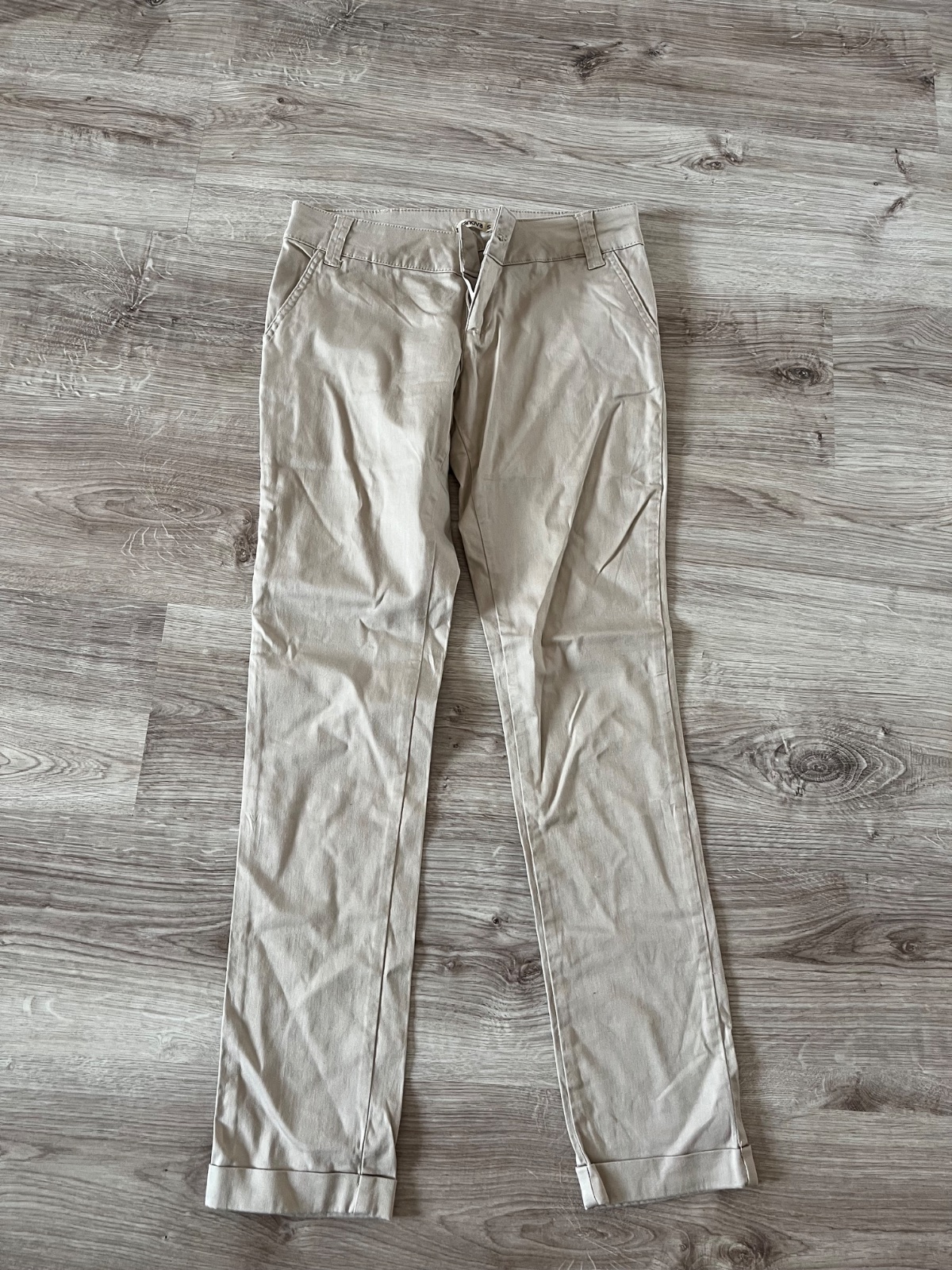 Nosené dámske béžové nohavice bez chýb a poškodení. Rozmery: dĺžka-95cm obvod pása-64cm obvod bedra-52cm výška pása-20cm