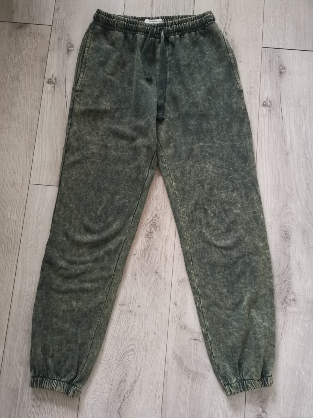 veľmi zachovalé bez poškodenia a žmolkov... chlapčenské frajerské tepláky veľkosť 164 na 14 rokov farba tmavozelené olivová materiál bavlna na gumičku + šnúrku v páse bočné dve vracká + zadné vr...
