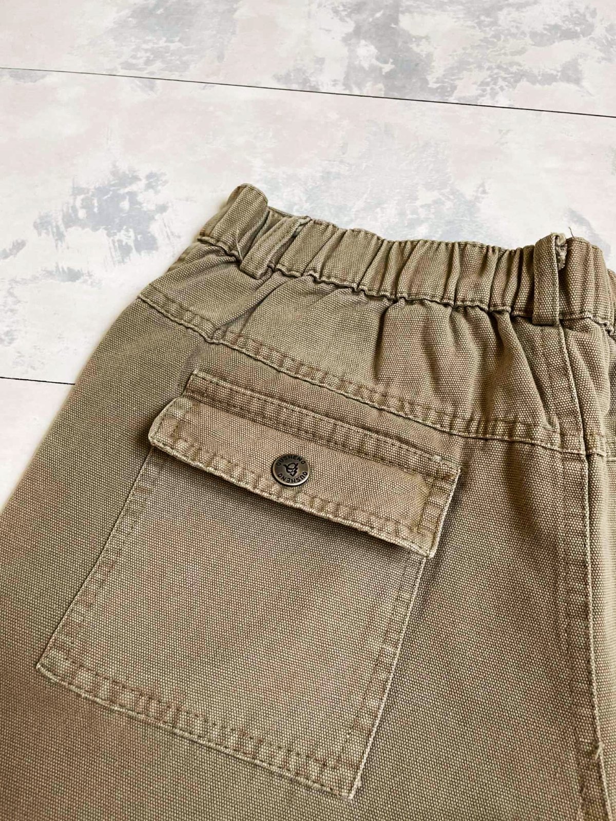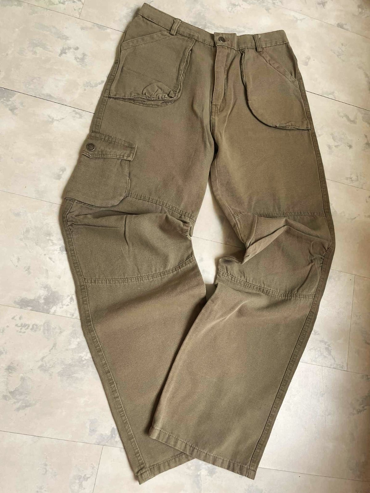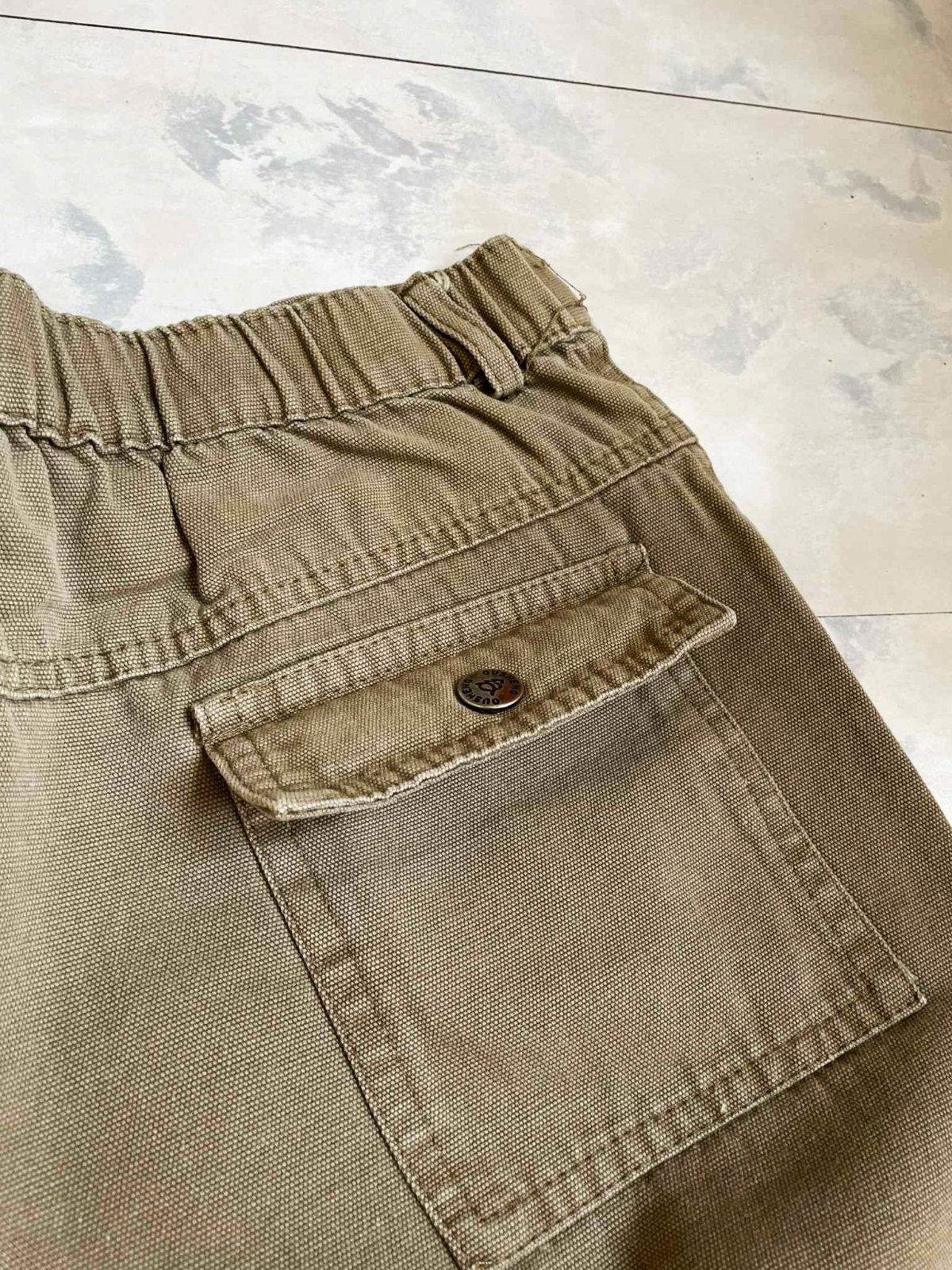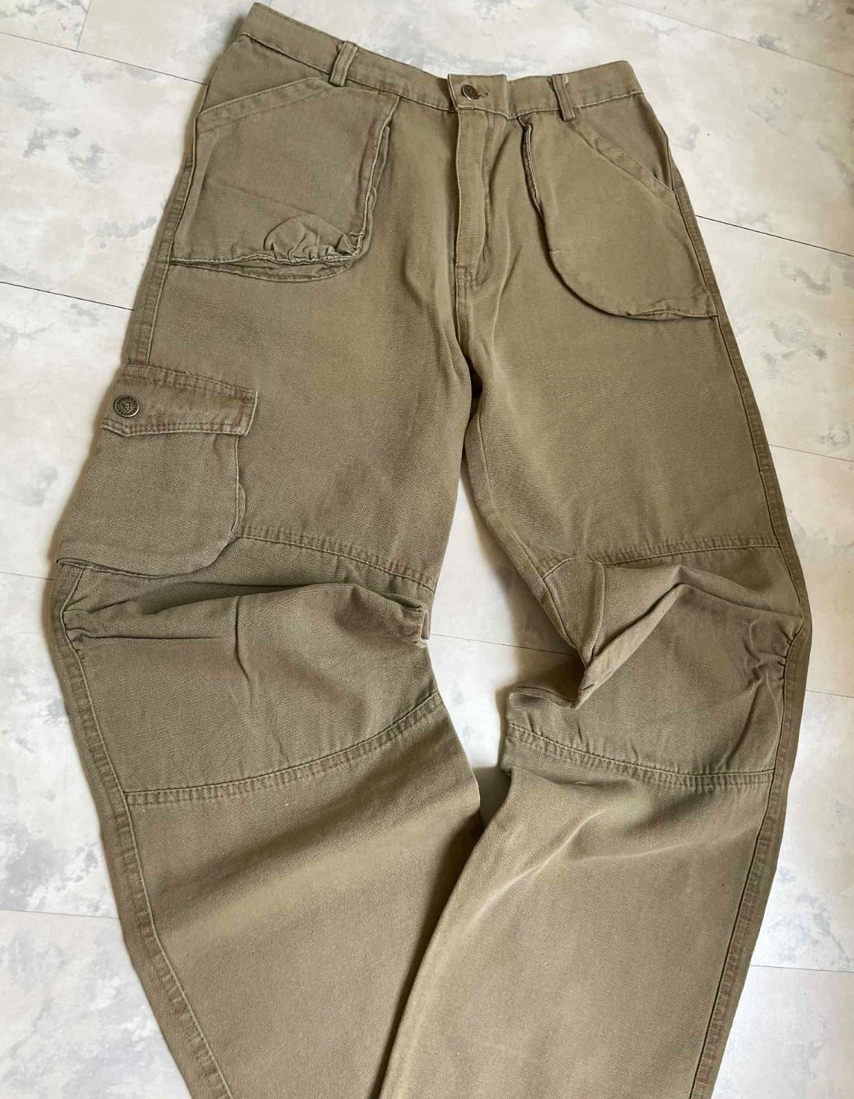 kvalitné športové pekne sadnúce pohodlné nohavice,materál - jemná celtovina - keper, neznosené,raz oprané,na zadnom diele gumička,typ - kapsáče - je to športový typ nohavíc,pás 35 x 2 cm,po natiahnutí gumičky max. 39 x 2 cm cm, vonk. dlžka 96/97 cm, vnut. dlžka =73/74,noha dolu = 20 cm,držia formu,65% bavlna,35% polyester,100 % stav,farba prírodná studená svetlohnedá - do olivovo zelenej vojenskej