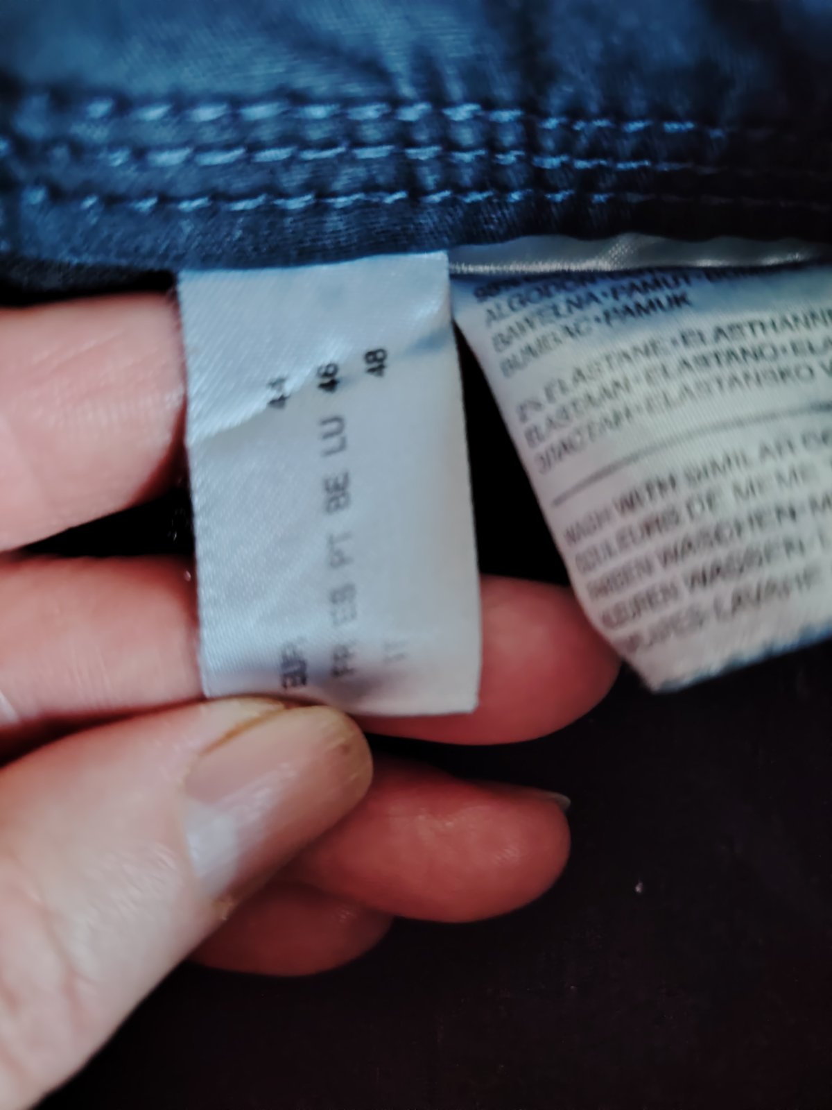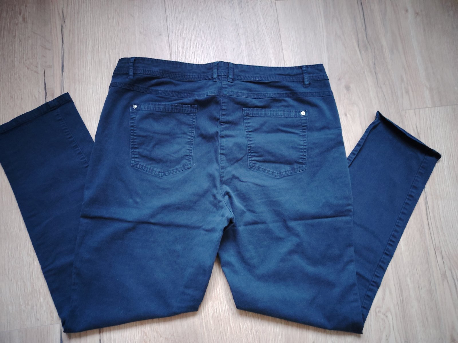 Tenšie nohavice, veľmi príjemný materiál, vo veľmi dobrom stave. Zloženie: 98%bavlna, 2%elastan. Pás: 47cm, dĺžka 100cm, vnútorná dĺžka 73cm, stehno pri rozkroku 32cm, predný sed 27cm, zadný sed 39cm.