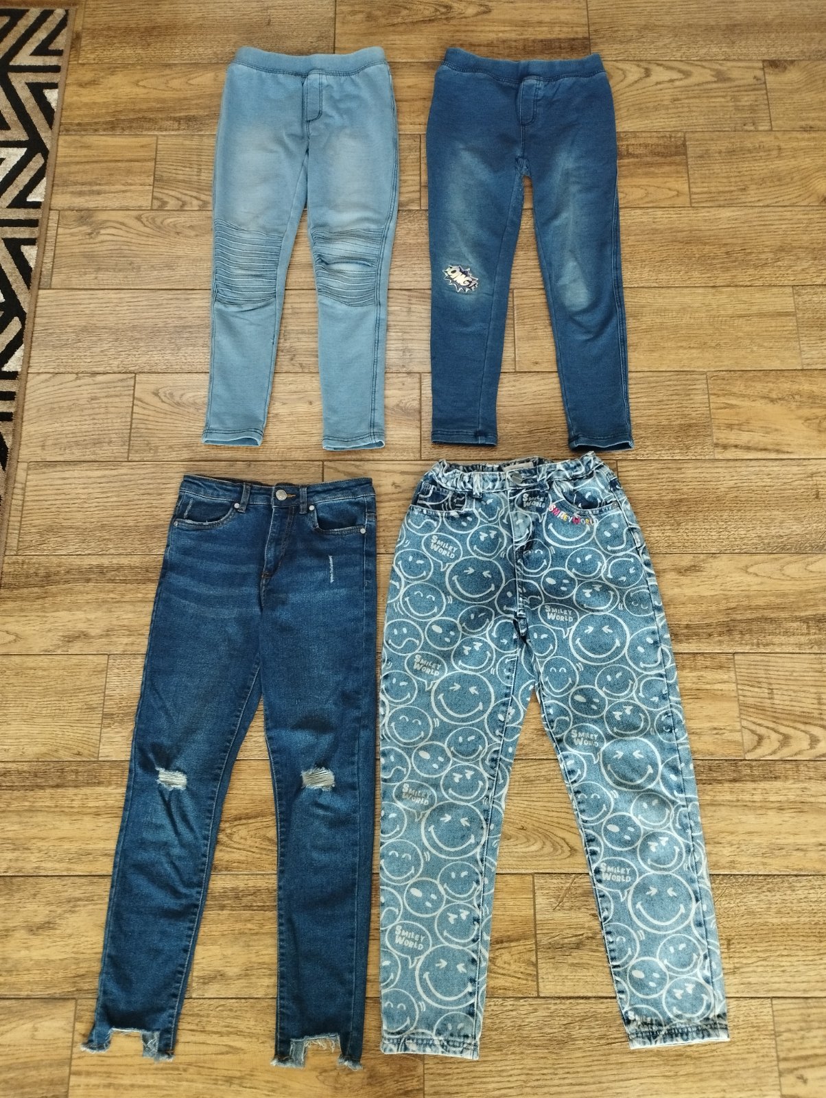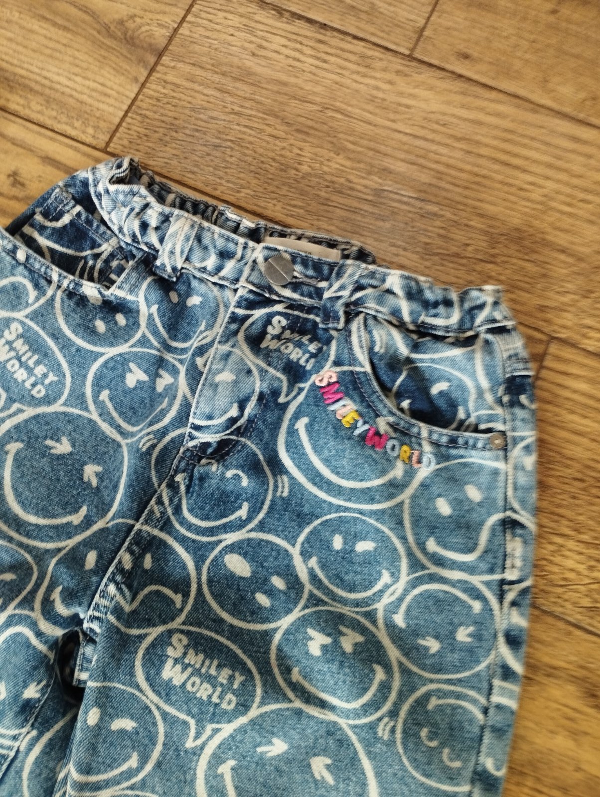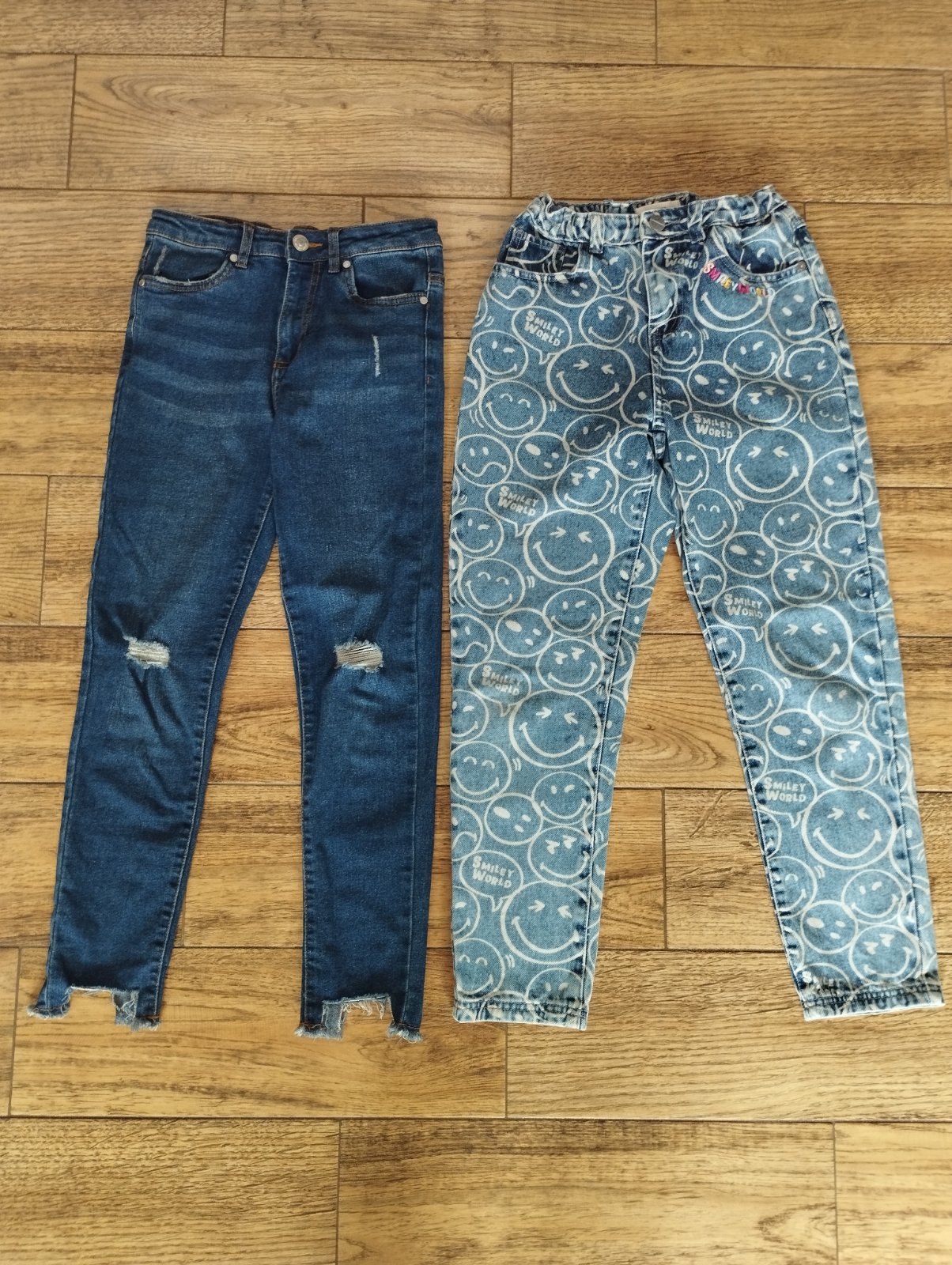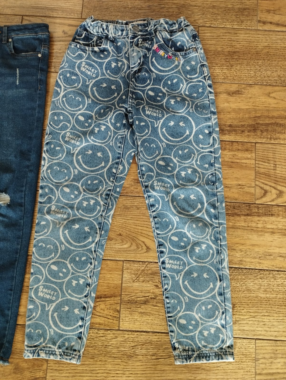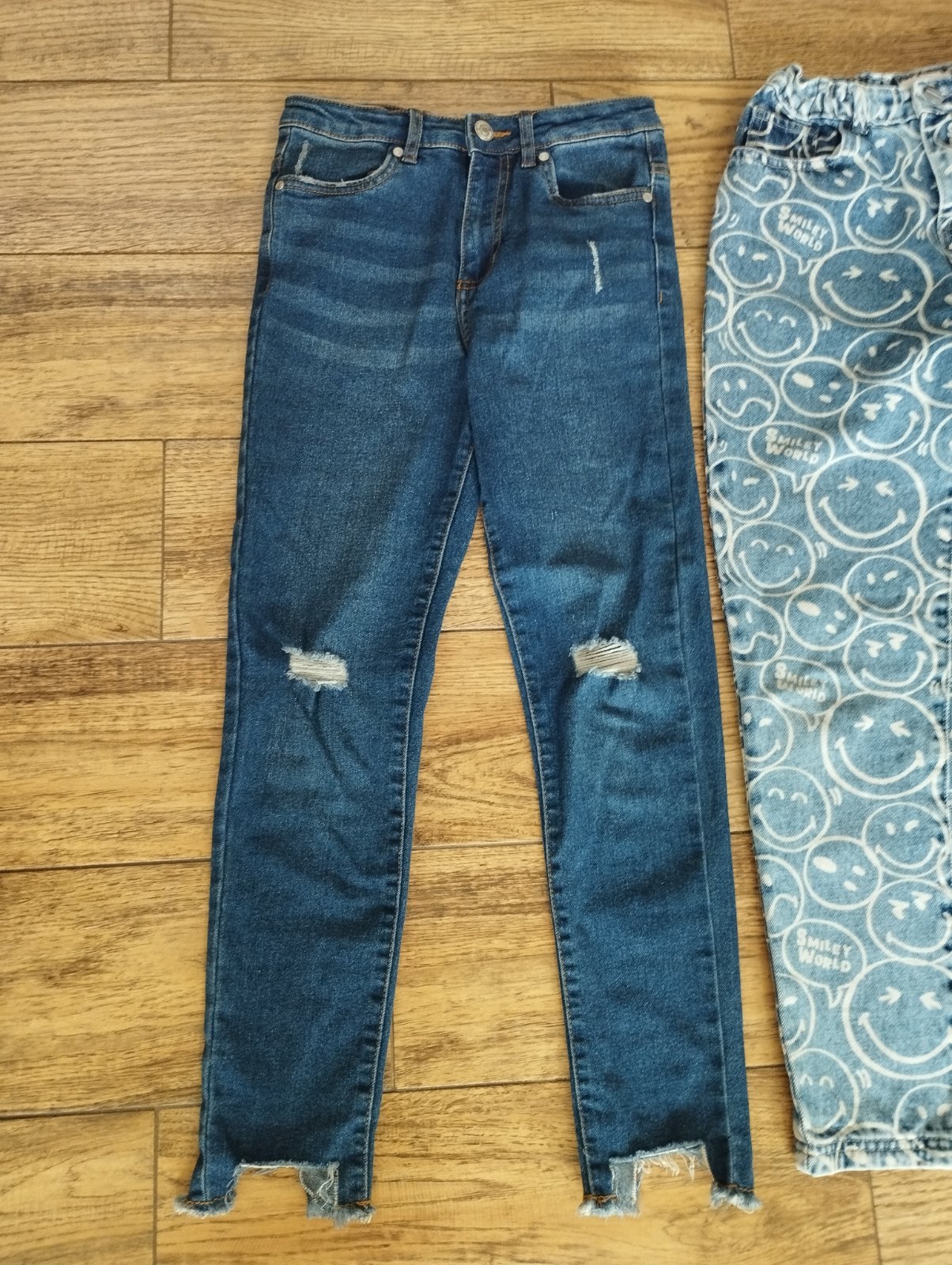 Rifle s roztrhanými kolenami a smajlíkové rifle sú v top stave, takmer ako nové, dcéra rýchlo vyrástla.