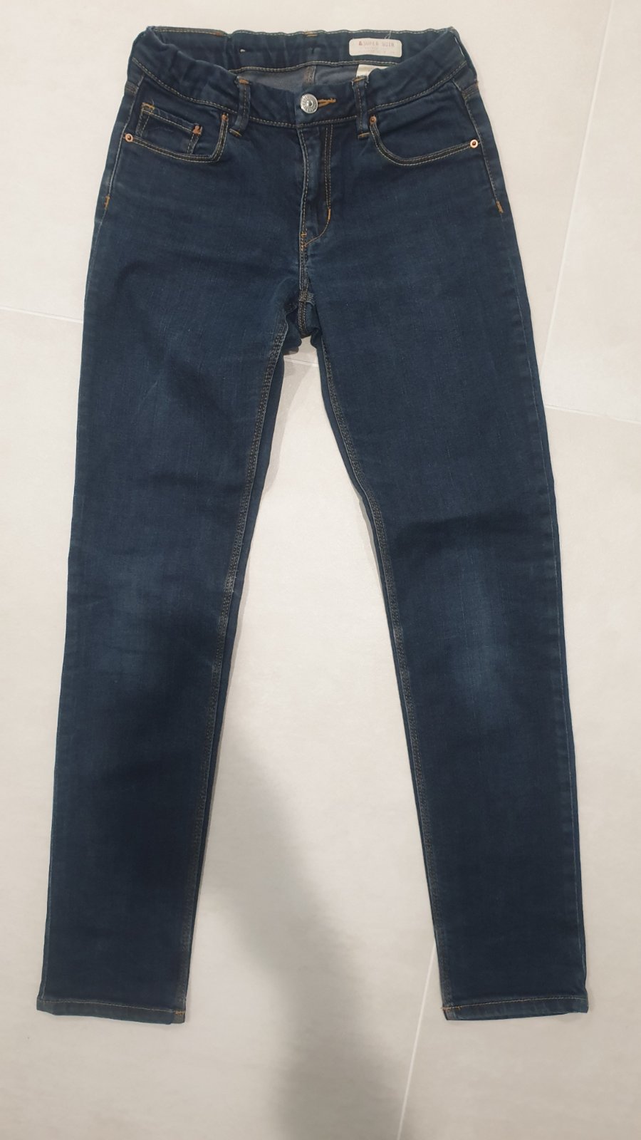Veľkosť 11-12 rokov, mäkké džínsy z pružného bavlneného denimu s úzkym strihom v oblasti bokov a stehien, zvonový strih na zvyšku nôh, nastaviteľná guma v páse, top stav, žiadne známky nosenia