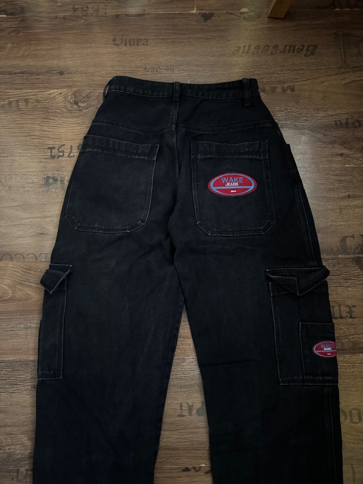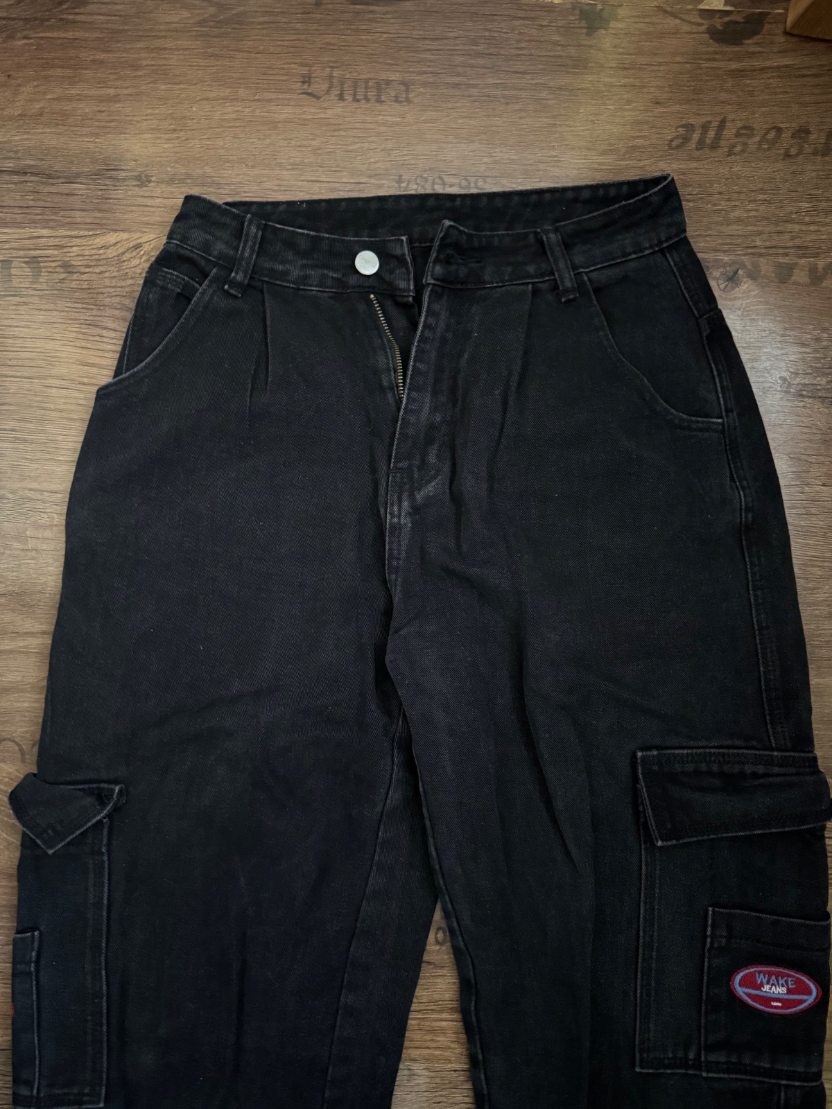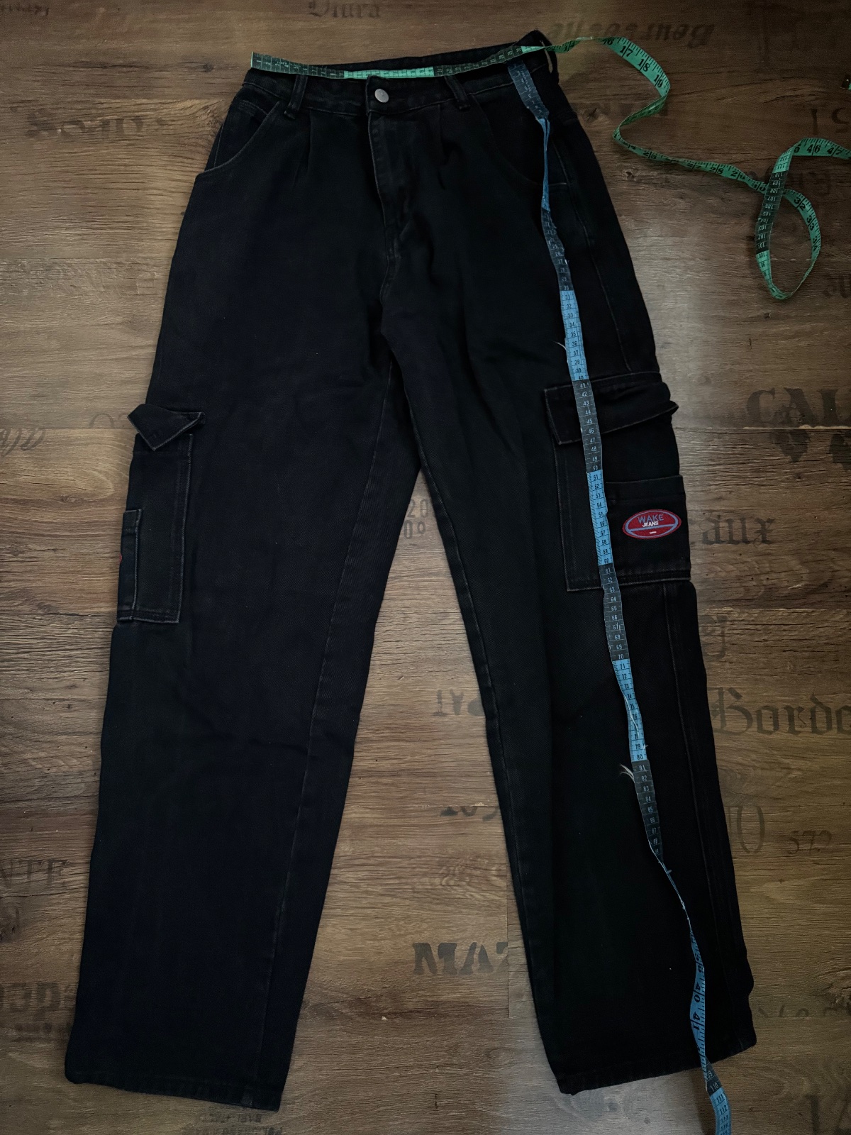 Ponúkam zaujímavé čierne rifle / kapsáče nie je uvedená značka, ani veľkosť, ale majú aplikácie s nápismi Wake Jeans. Nosila ich dcéra ako oversize a ona bežne nosí XS… a možno sú aj chalanské🙈 prikladám aj rozmery. Sú v málo nosenom, naďalej vo veľmi peknom stave. Poštovné podľa taríf.