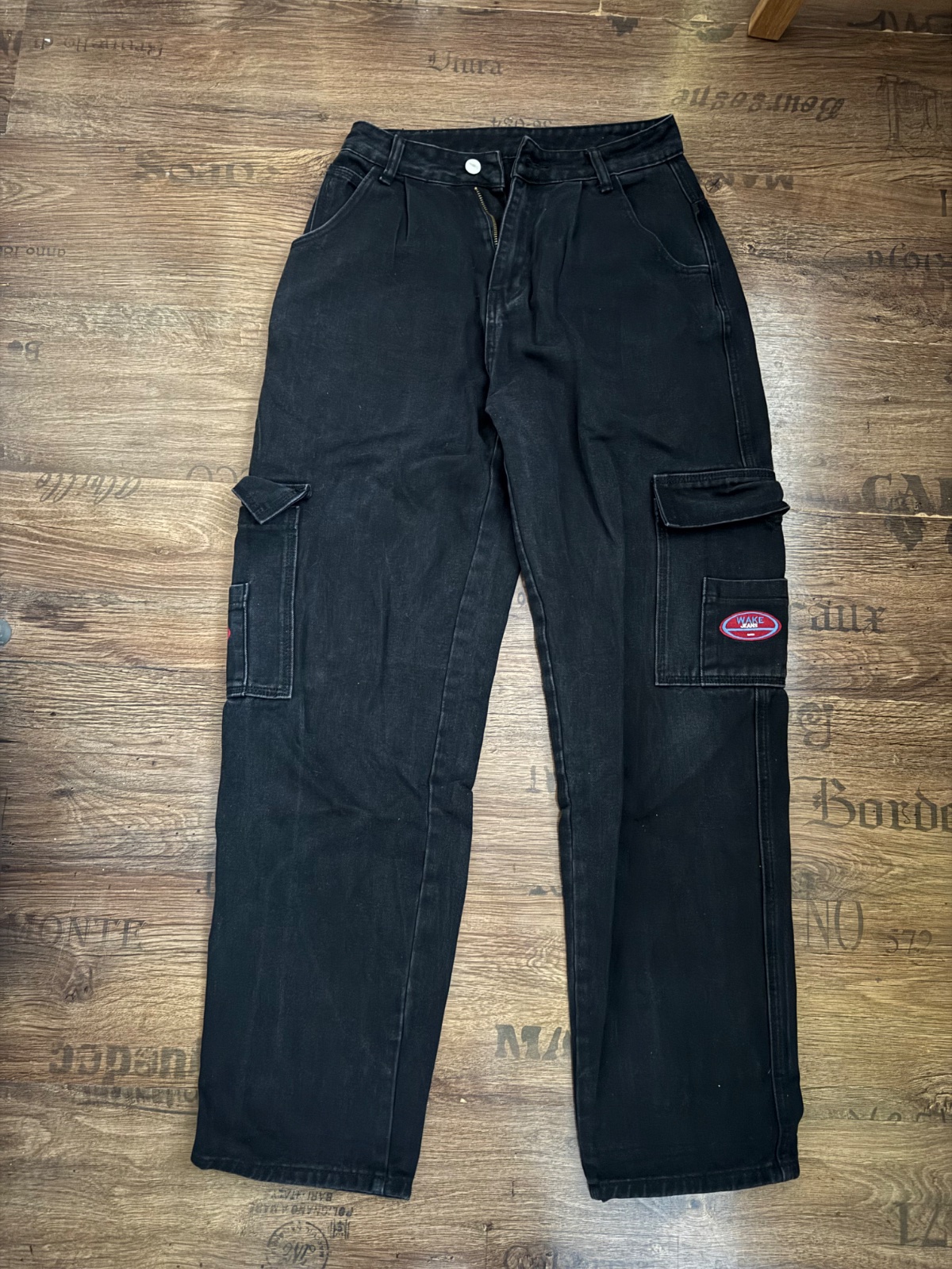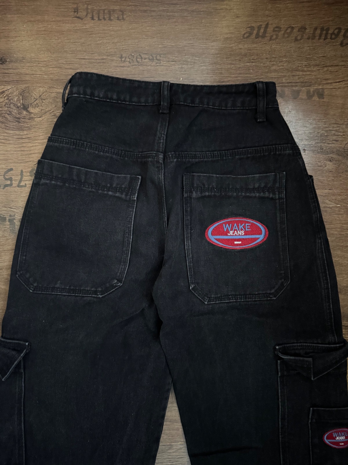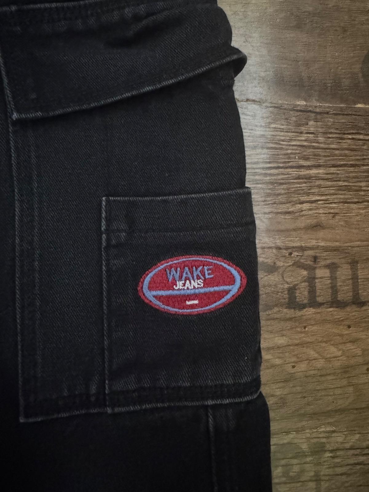 Ponúkam zaujímavé čierne rifle / kapsáče nie je uvedená značka, ani veľkosť, ale majú aplikácie s nápismi Wake Jeans. Nosila ich dcéra ako oversize a ona bežne nosí XS… a možno sú aj chalanské🙈 prikladám aj rozmery. Sú v málo nosenom, naďalej vo veľmi peknom stave. Poštovné podľa taríf.