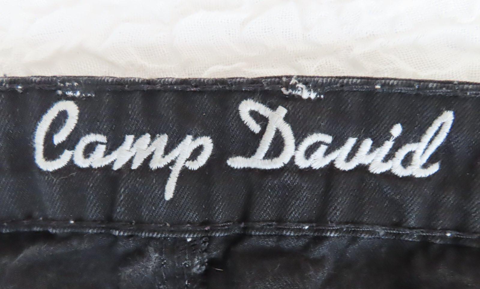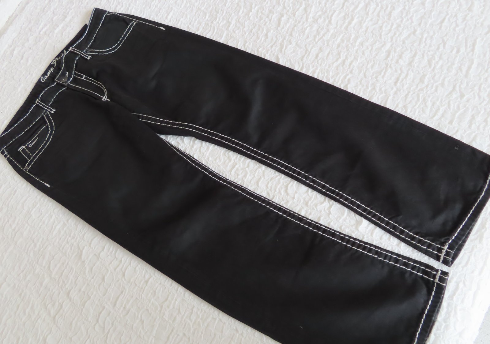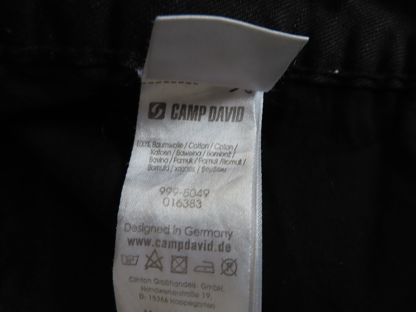 Čierne pánske rifle zn. Camp David, veľ. 36/32, rozmery: bočná dlžka 109cm, od rozkroku 79cm, pás 2x47cm. Predný sed 27cm, zadný sed 41cm,šírka nohavice dole 23cm