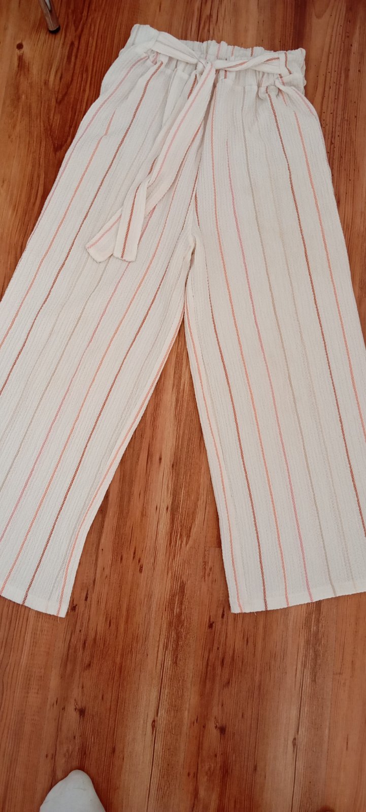 Krásne nohavice, vyšší pás s gumou, v predu vačky, v predu diery okolo kolien. Veľkosť 158, 11rokov. Za mňa krásne nohavice 😊