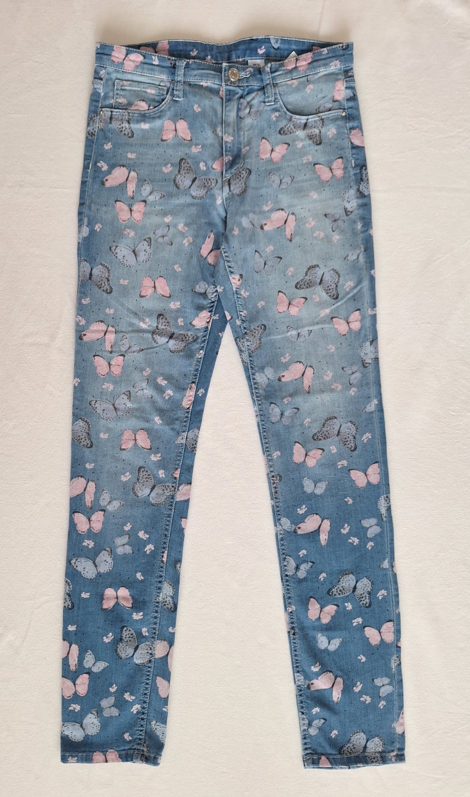 Dievčenské rifle, rozmery: pás 2x34, boky 2x51, dĺžka 99 od pása.