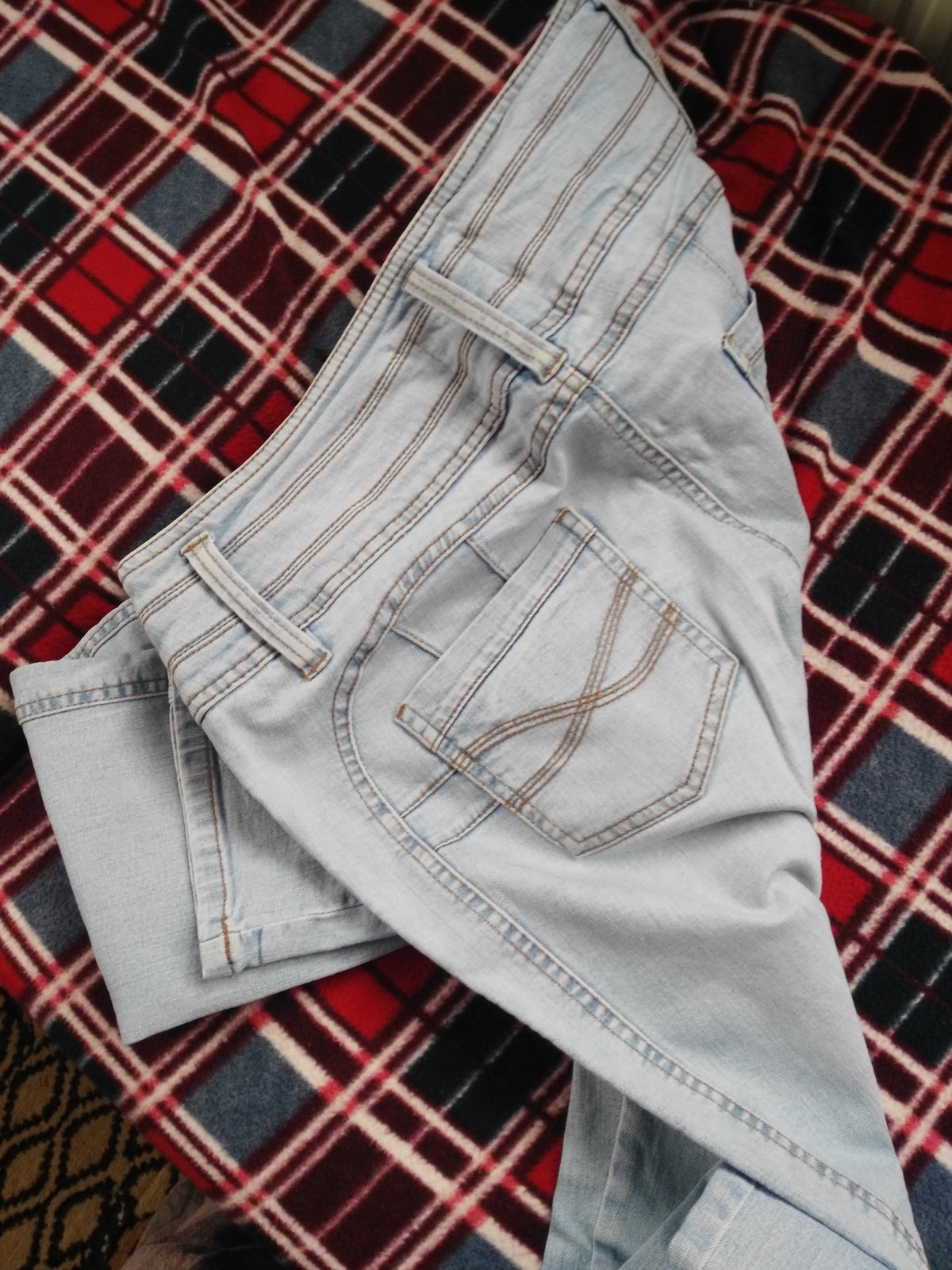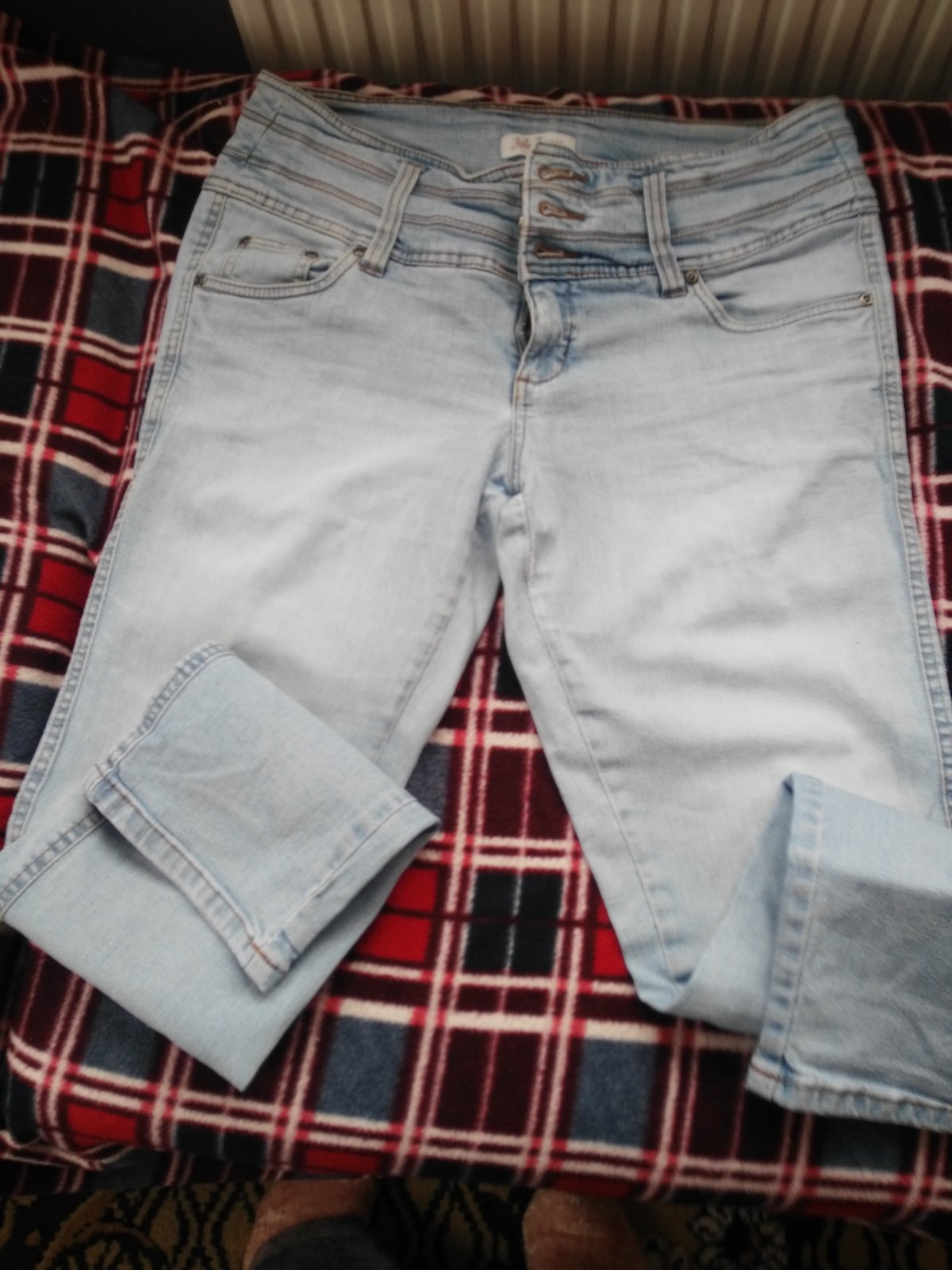 Nosene, vpredu na jednej nohavici par malych fliackov, snazila som odfotit, ale asi to nevidno, zlava 50%
