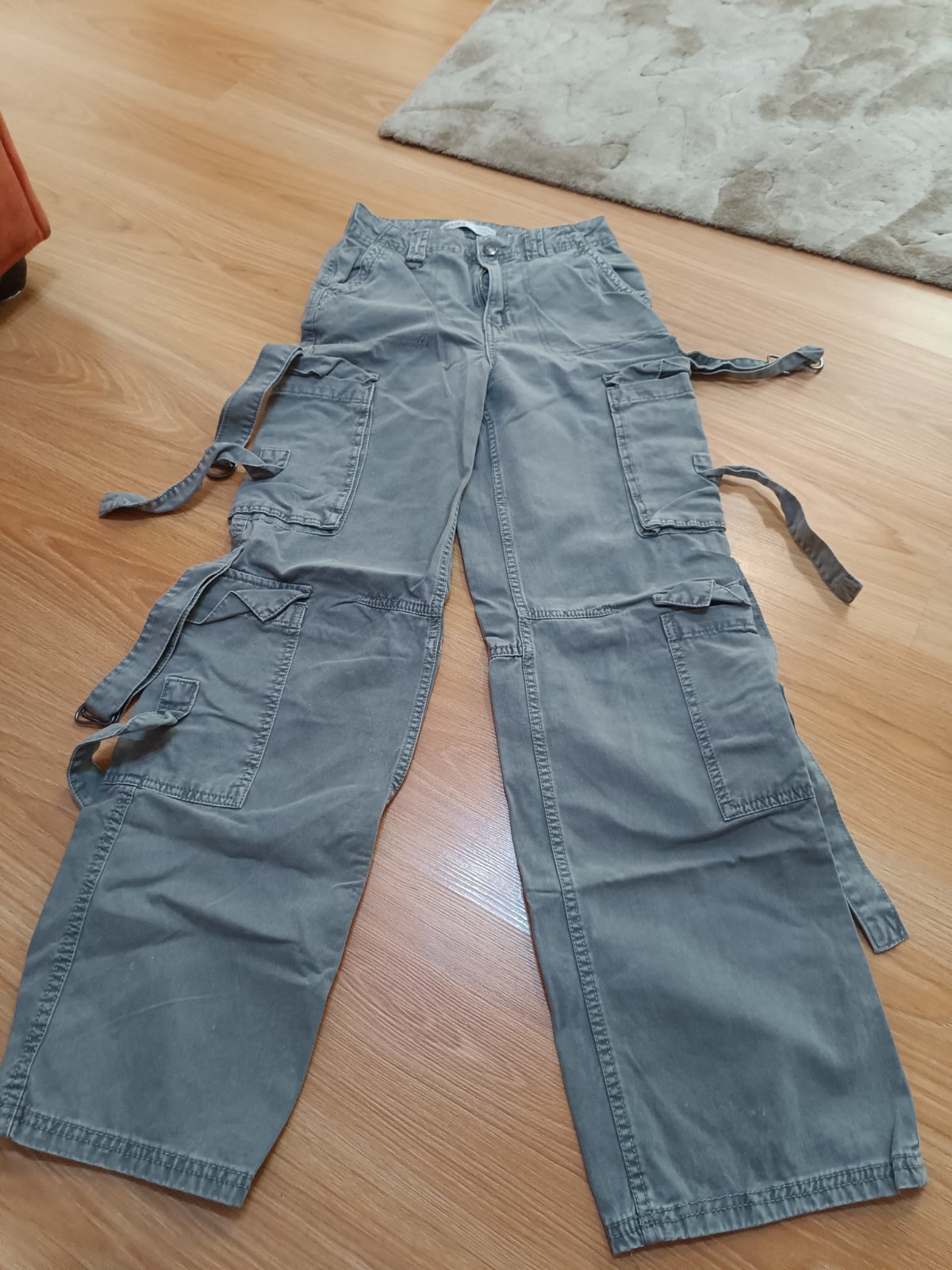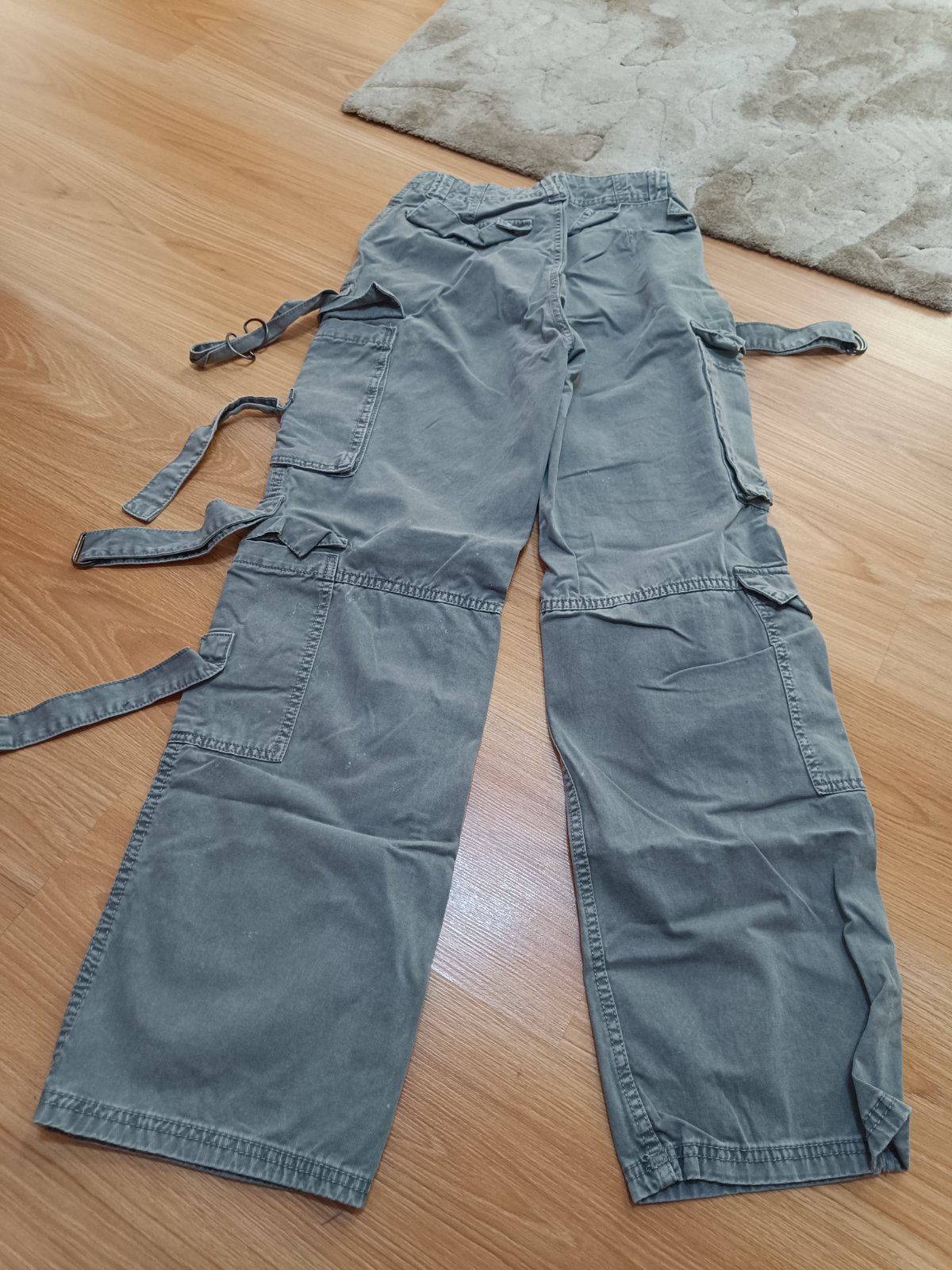Predám šedé dievčenské nohavice značky Bershka, veľkosť 34, celková dĺžka 102cm, obvod pása 65cm