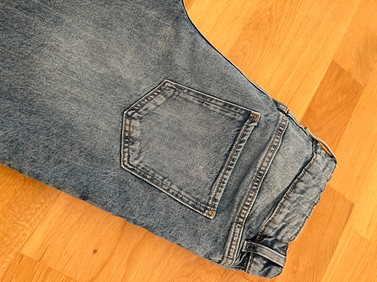 Nosené bez poškodení, stredne hrubá rifľovina, vpredu a vzadu vrecká,trhané Veľkosť 158 dĺžka 90/68cm, pás v kľude 35*cm (je pružný) A2