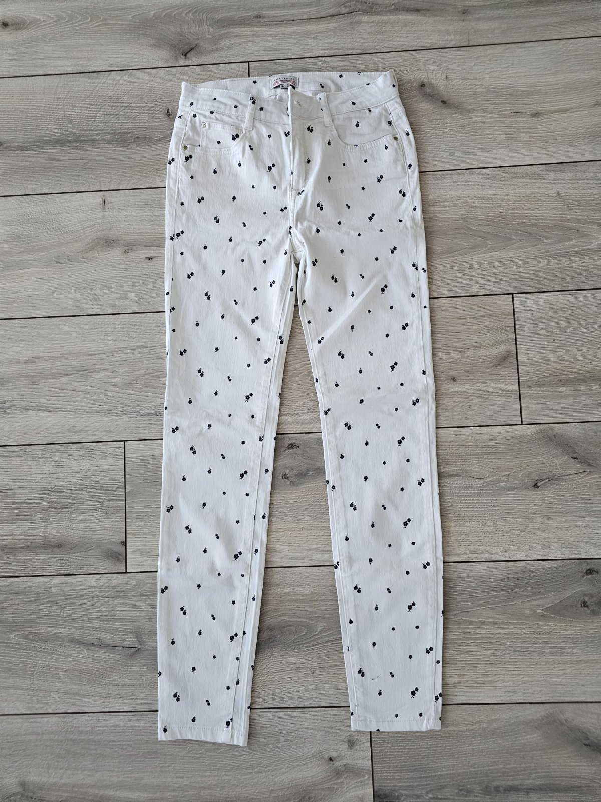 Predam ako nové biele rifle s kvetinkami v.36 zn. Cortefiel za 8 €.