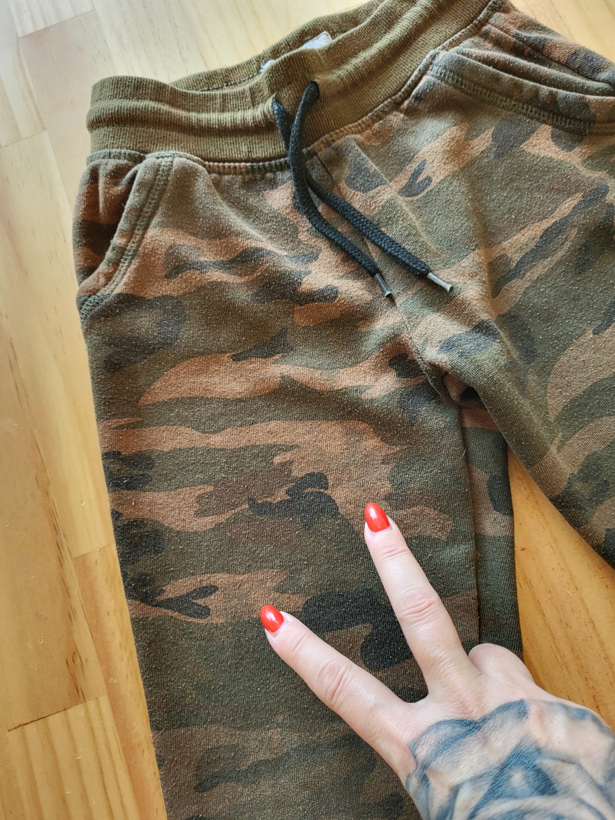 dobrý stav, bočné vačky, mierne ušpinenie kolien a fliačiky avšak strácajú sa v maskáčovom vzore, poštovné doporučene 3,50 €