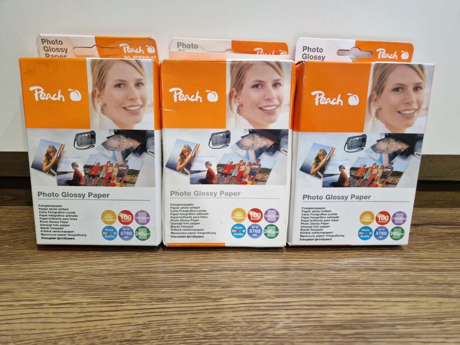 Predam 3ks Peach fotopapier 10x15cm, 240g/m2, lesklý, 100 listov a 4ks 10x15cm, 260g/m2 leskly 50 listov nakolko ich uz nepouzivam posuvam dalej.Cena za kus pevna 7€+postovne alebo samozrejme moznost Osobny Odber Roznava.
