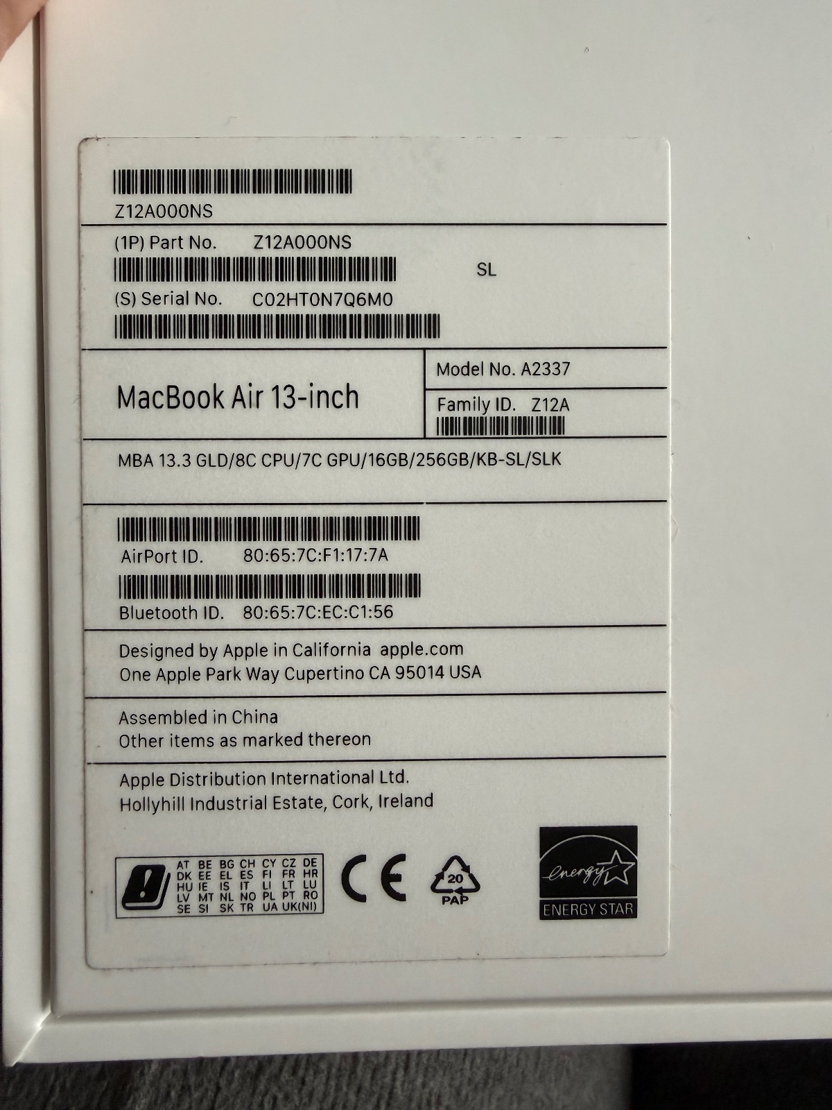 MacBook Air 2020, 13-inch, M1, 16GB/256 GB