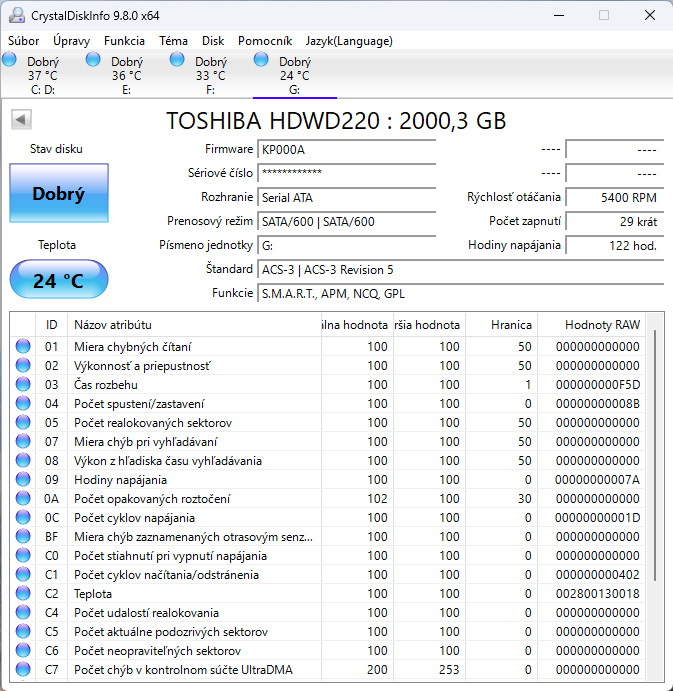 TOP stav, disk je plne funkčný, 100 % zdravie, veľmi tichý. Disk má veľmi málo „nabehané“, párkrát bol zapnutý, je ako nový.