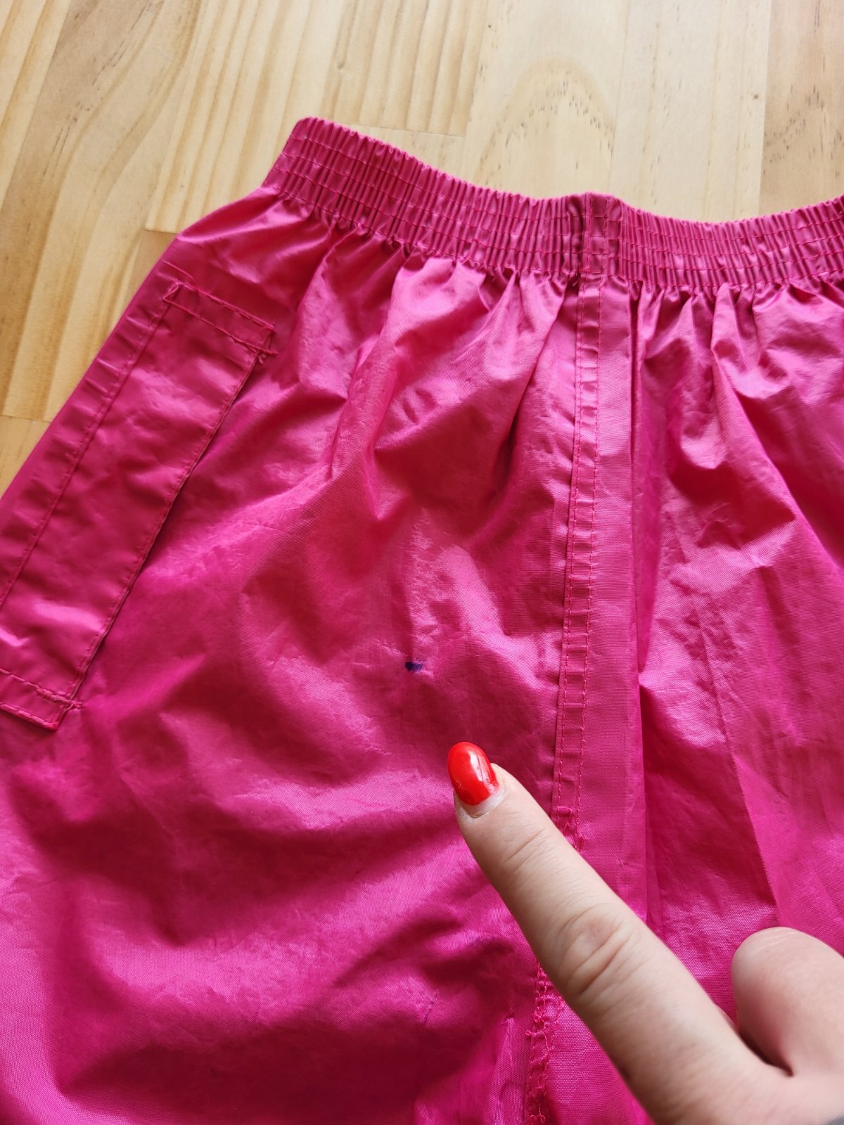 dobrý stav, otvor pre vačky s príklopom, spodok so stiahnutím na cvoky, nedokonalosti - predný fliačik, nižšie na nohaviciach fľaky, spodok nohavíc mierne predratý taktiež vnútorné boky spoju lepeného šva, úlohu ešte určite splnia, sú plne nositeľné, vzhľadovo vyzerajú stále veľmi dobre, poštovné doporučene 3€