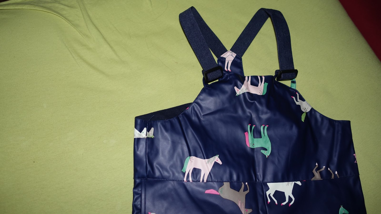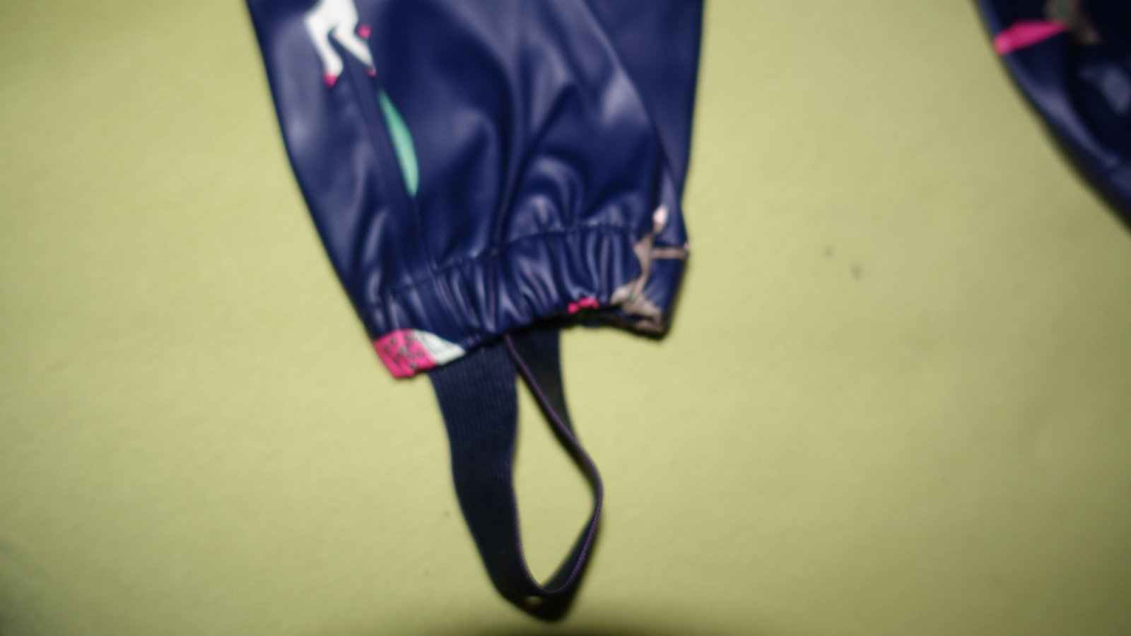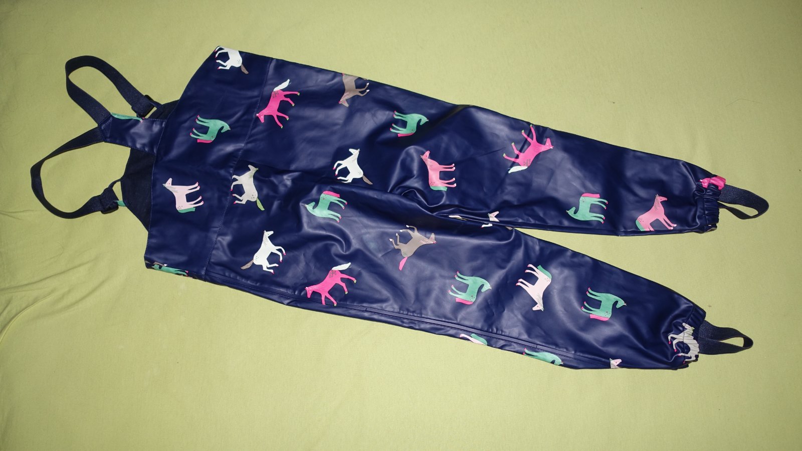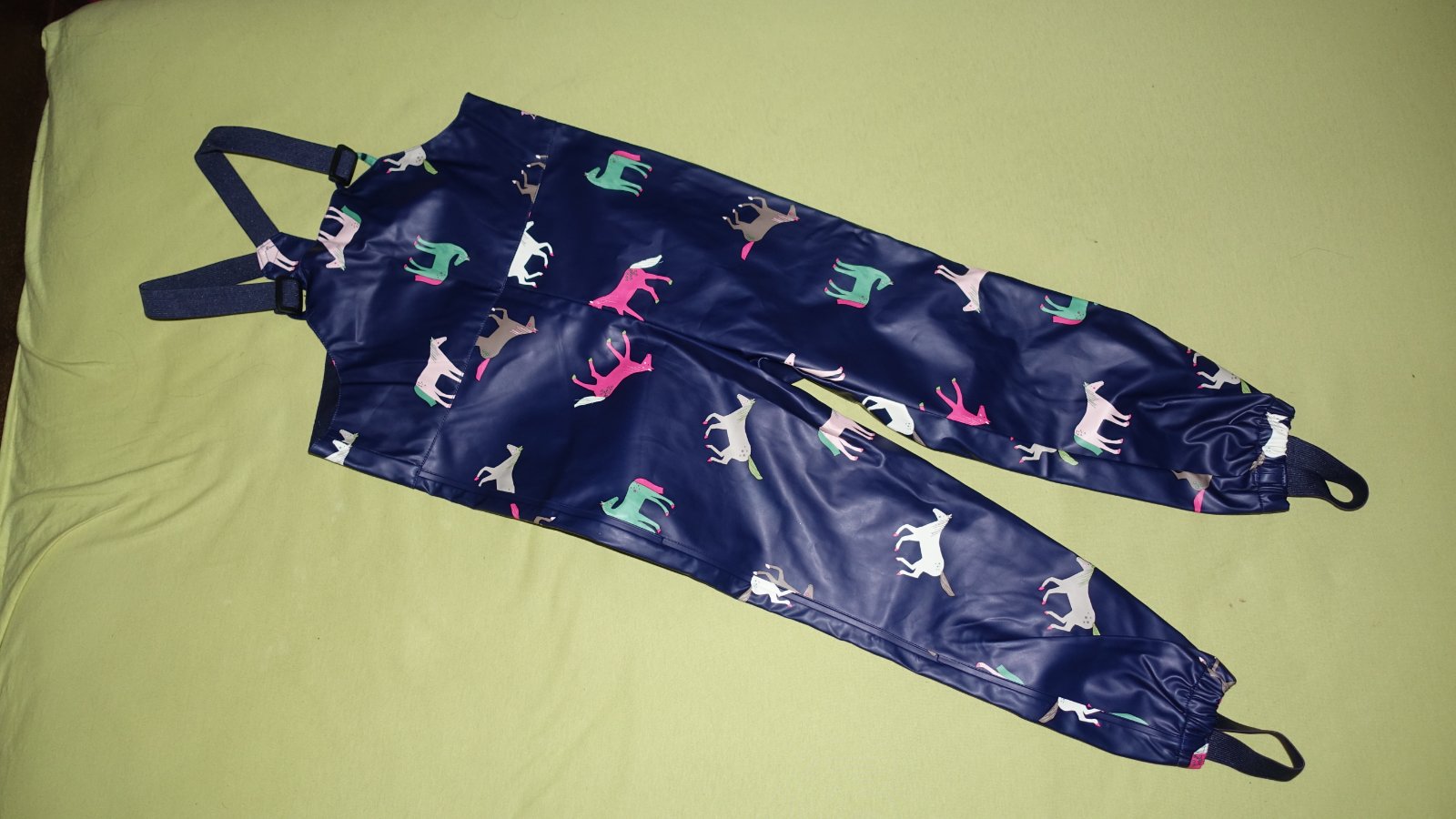 Krasne pogumovane nohavice vo vybornom stave. Velkost je uvedena ako L, podla mna su to 116-ky.