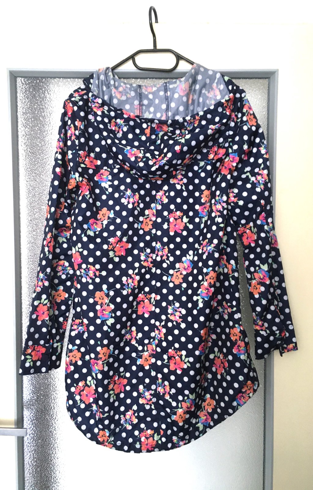 dĺžka od pleca 76 cm, šírka v podpazuší 50 x 2 cm, dĺžka rukáva od krku 71 cm, vnútorná dĺžka rukáva 46 cm
