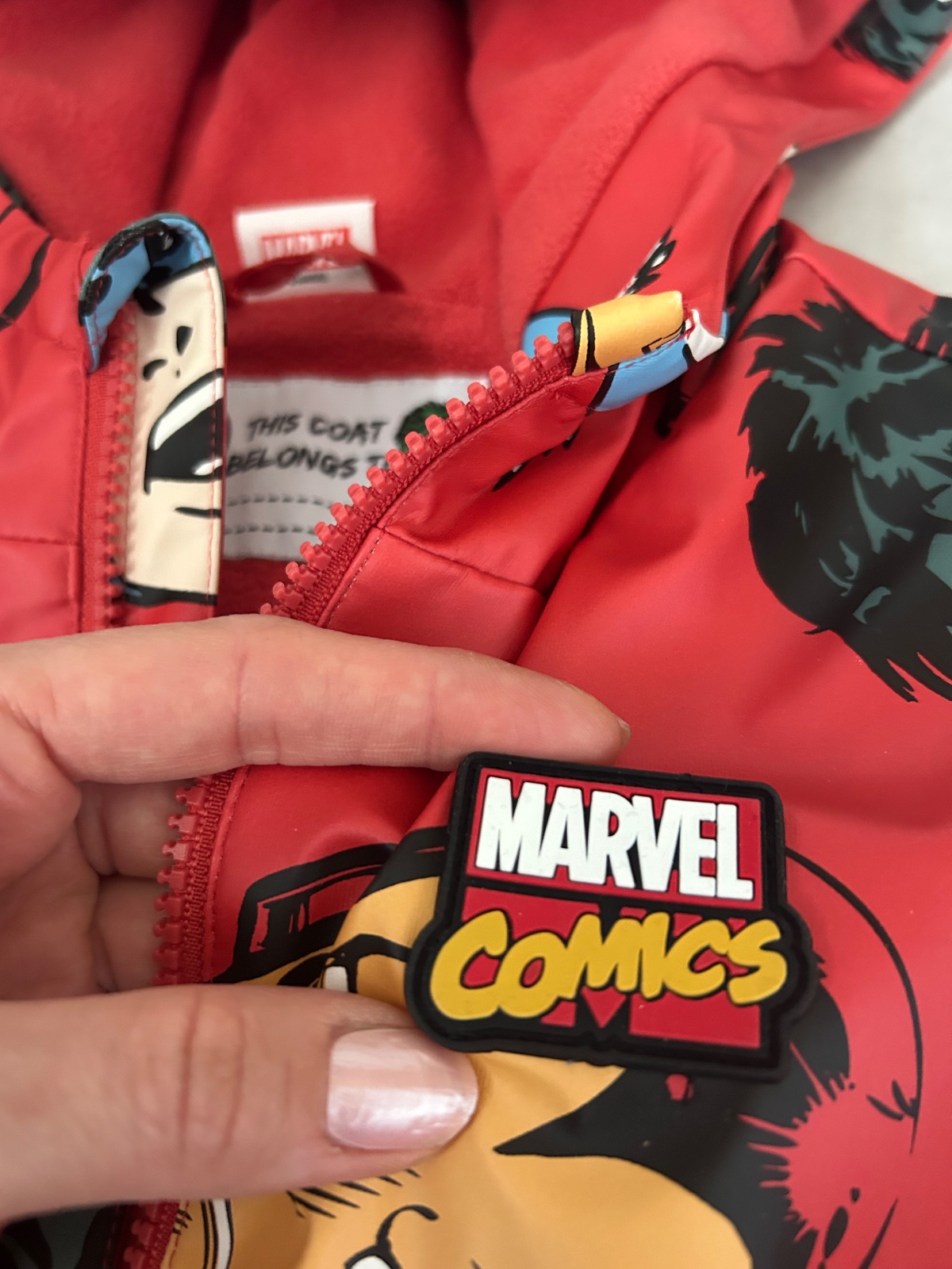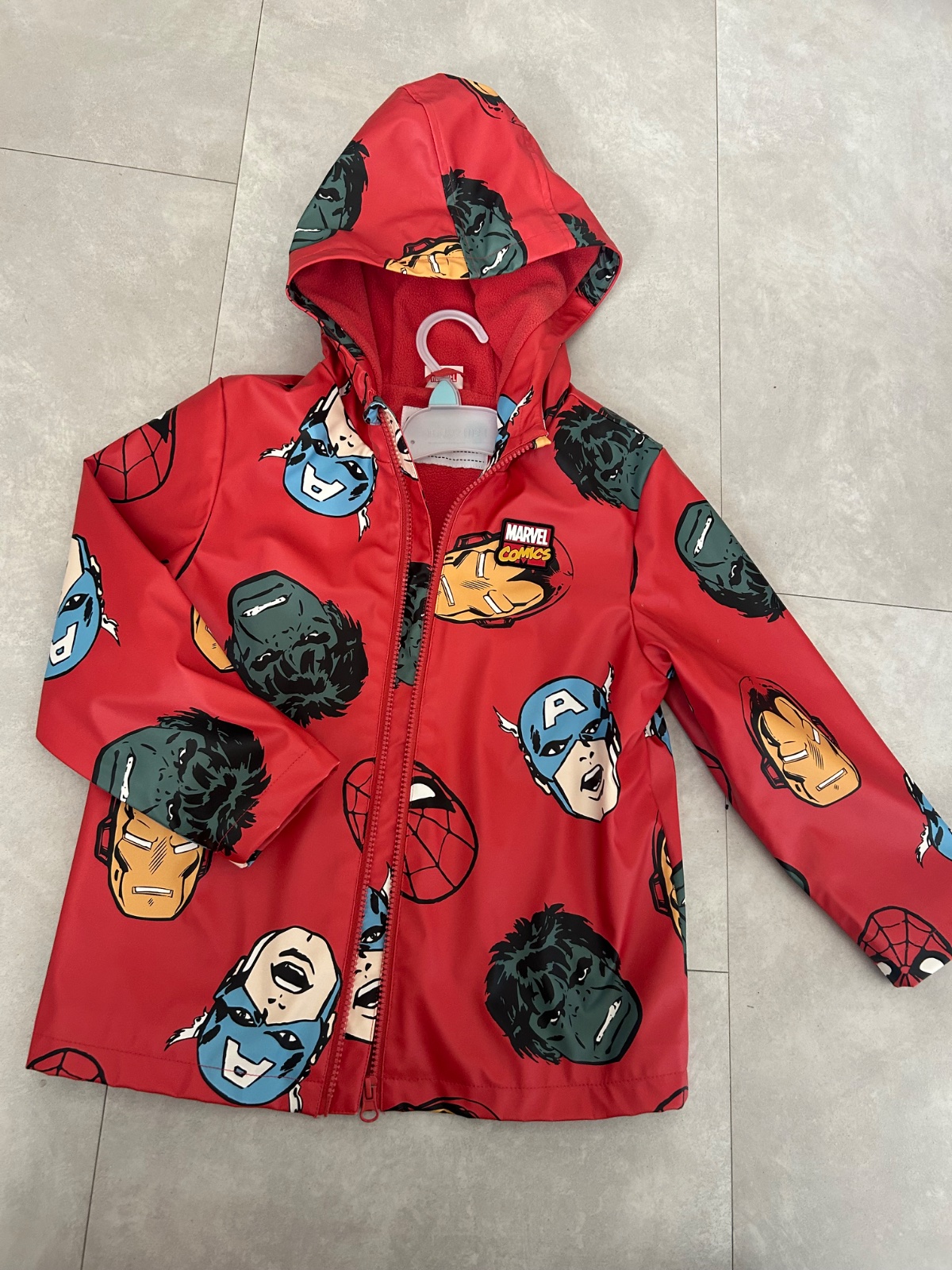Zateplena flisom bunda do dažďa. Akoby pršiplášt podšitý teplým fleece. Nenosená. Marvel hrdinovia - spiderman, thor, iron man, kapitan amerika, . Krásne farby👌