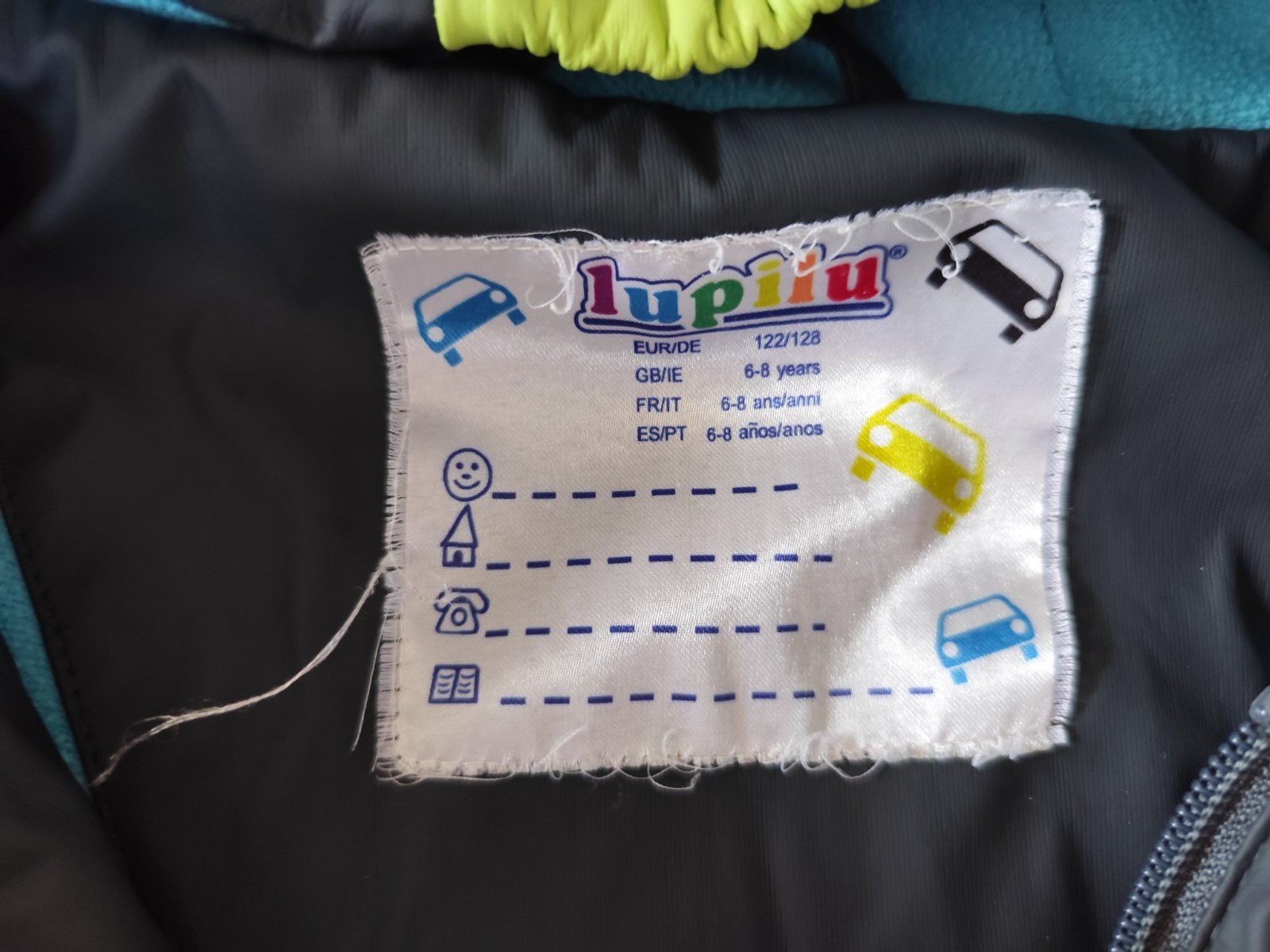 Nepremokavá bunda značky Lupilu, je zateplená, veľkosť uvedená 122/128.
