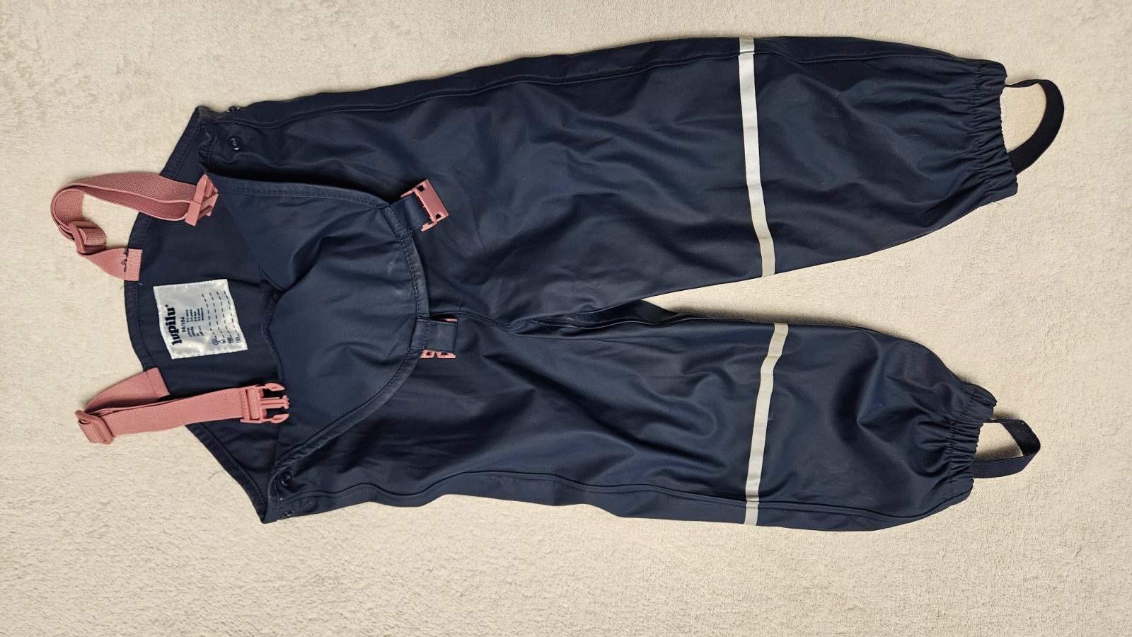 Predám nepremokavé nohavice na traky značky Lupilu veľkosť 98/104. Nohavice sú vetruvzdorné a vodotesné s reflexnými prvkami. Nohavice majú elastické zakončenie s gumovým pásom, ktoré pevne drží a nevyhŕňa sa. Sú dĺžkovo nastaviteľné, traky sú elastické, na bokoch majú gombíky na reguláciu obvodovej šírky.