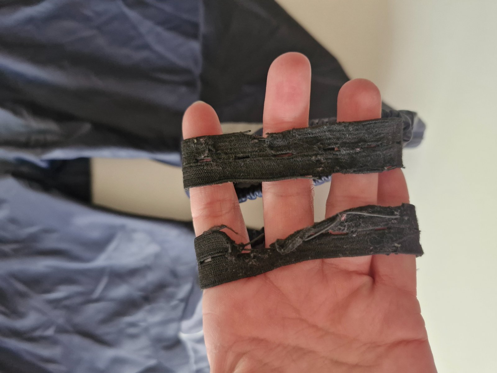 Veľmi pekné tenké nohavice do dažďa nepremokavé tmavomodré príjemné, oblečené len veľmi minimálne, takže sú v perfektnom stave
