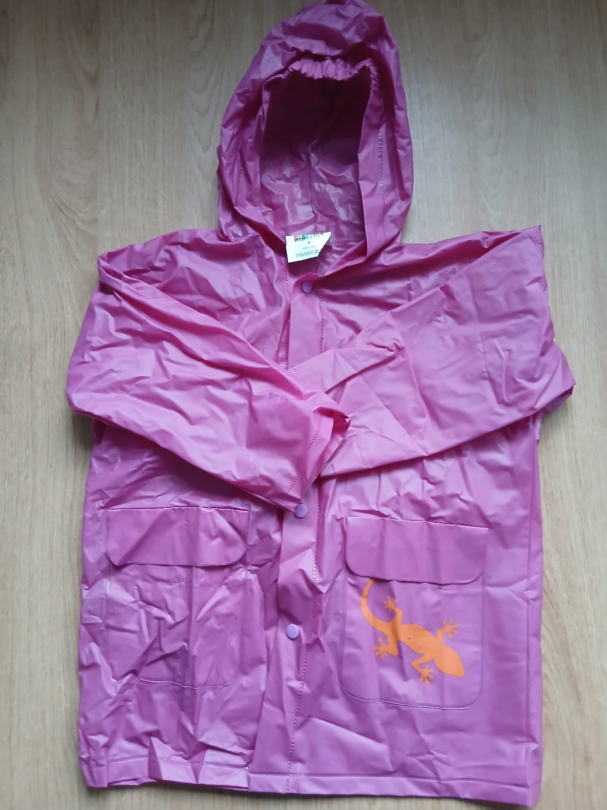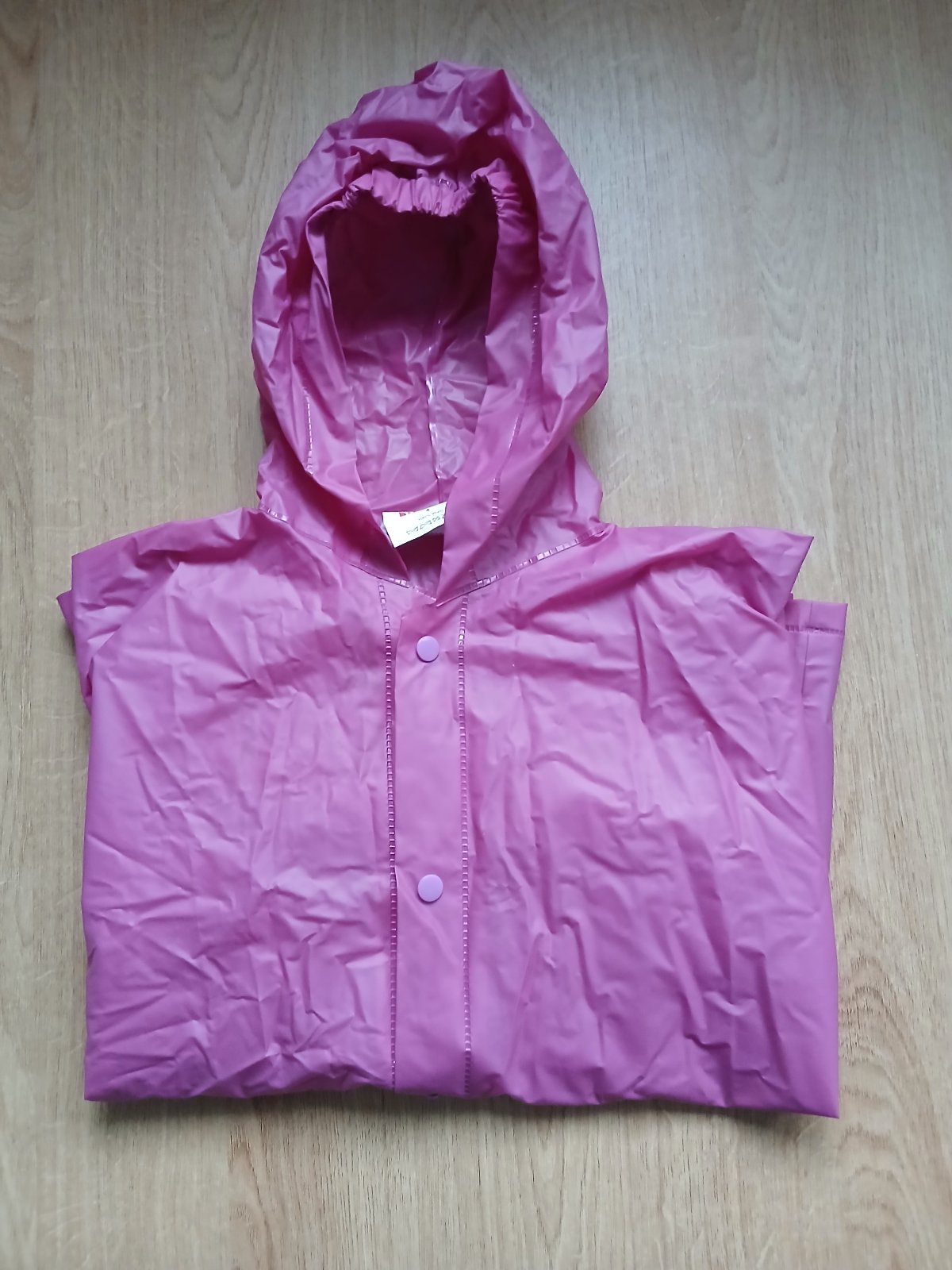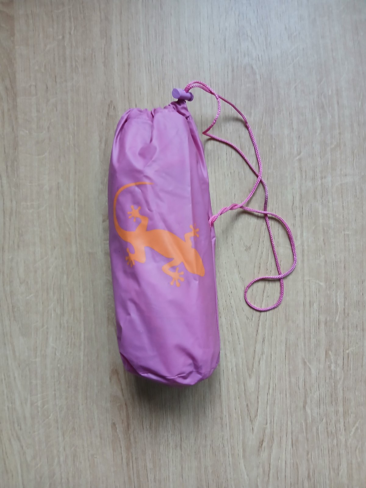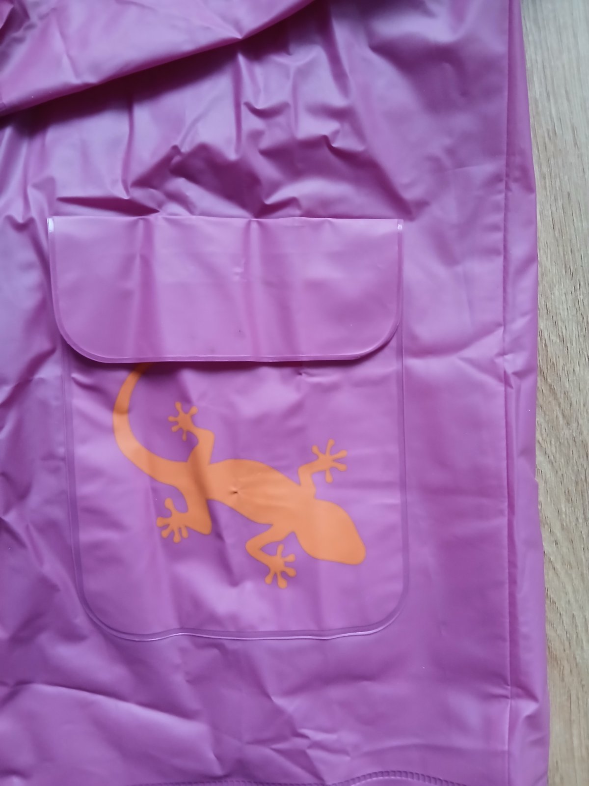 Svetlofialový pršiplášť vo výbornom stave, s vreckami a vrecúškom na uloženie.